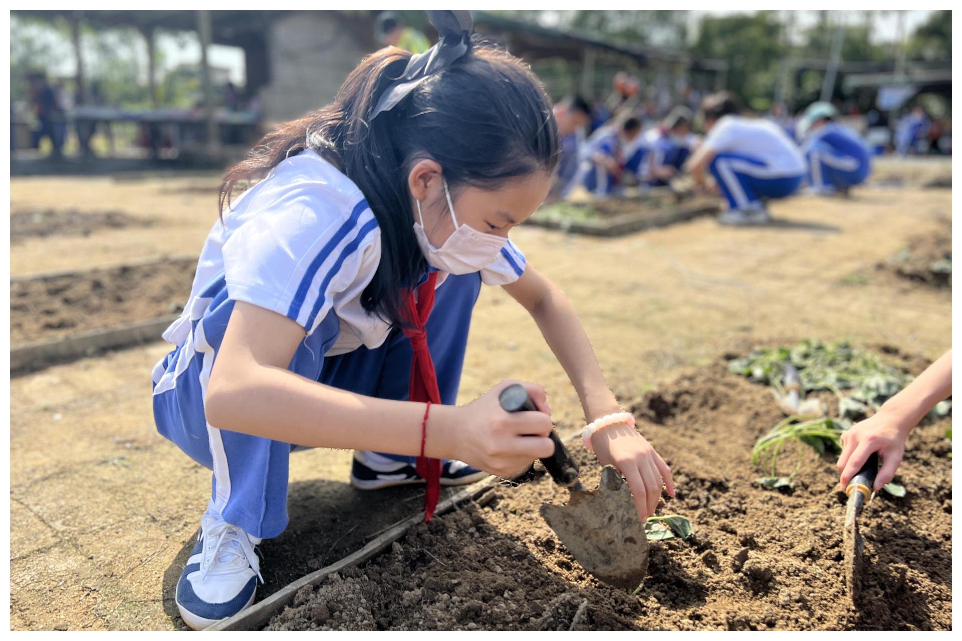 一二年级的同学们走进了甘坑客家小镇,在古建筑和田园间,开启了探访客家小镇,体验农场乐趣之旅。五六年级的同学们在大鹏美丽乡村通过打年糕、田园种菜、犁地、锄草等活动,感受到了每一粒粮食与每一棵蔬菜的来之不易,也体验着劳动中艰辛与快乐并存的过程。三四年级的同学们在丰富的劳动活动中增长了农业知识,收获了劳动技能,坚定了勤俭节约的信念。