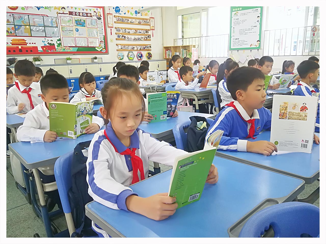 午阅——书香一课。全校安静无声,同学们与书为伴、沉浸书海。