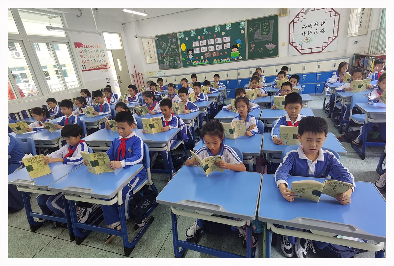 菁菁校园读经典,开卷植梦绽芳华。学校为给学生和教师的发展赋能,给每个学科每个班级购买了大量新书,还为学生和家庭的阅读安排了具体指导,方法指引如春雨,悄然浸透润心田。