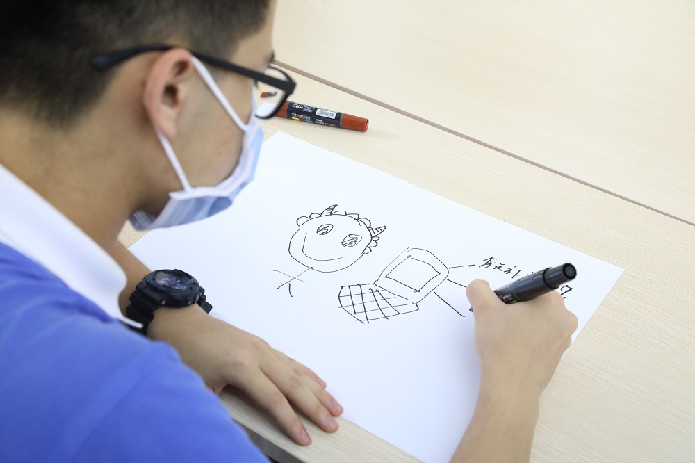 参与心理疏导的师生在白纸的中间画一幅自画像或写一个代表自己心境的字,然后在其周围画不同的圆圈,圆圈里写上压力的名称和来源,再用1-10对面临的压力进行排序评估,然后在小组内传递压力圈,最后小组总结出共同的压力。