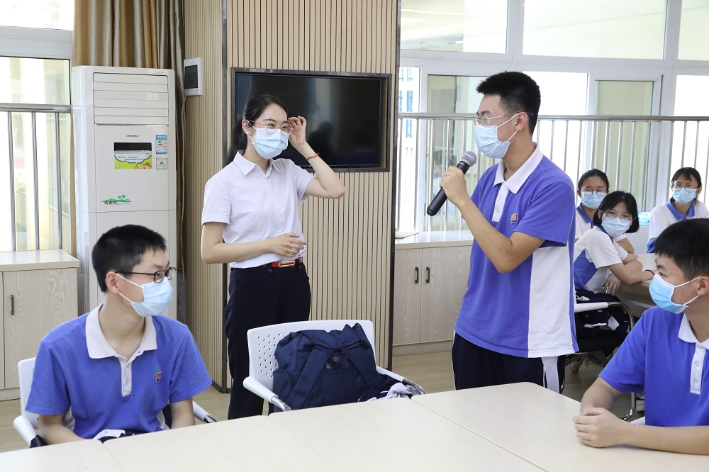 心理疏导课以超级访问开场,师生以“网课期间最难忘的情景”为访问主题进行分组采访。互访结束后,小组代表分享采访内容。