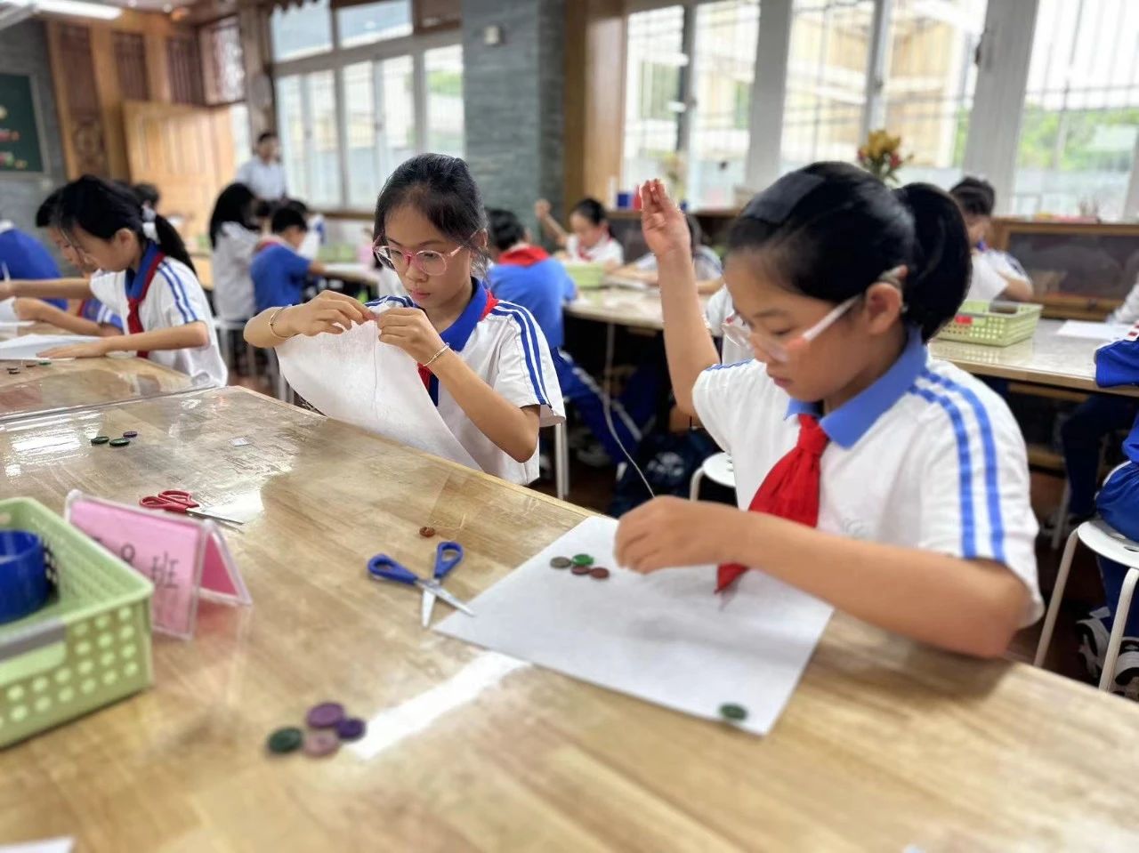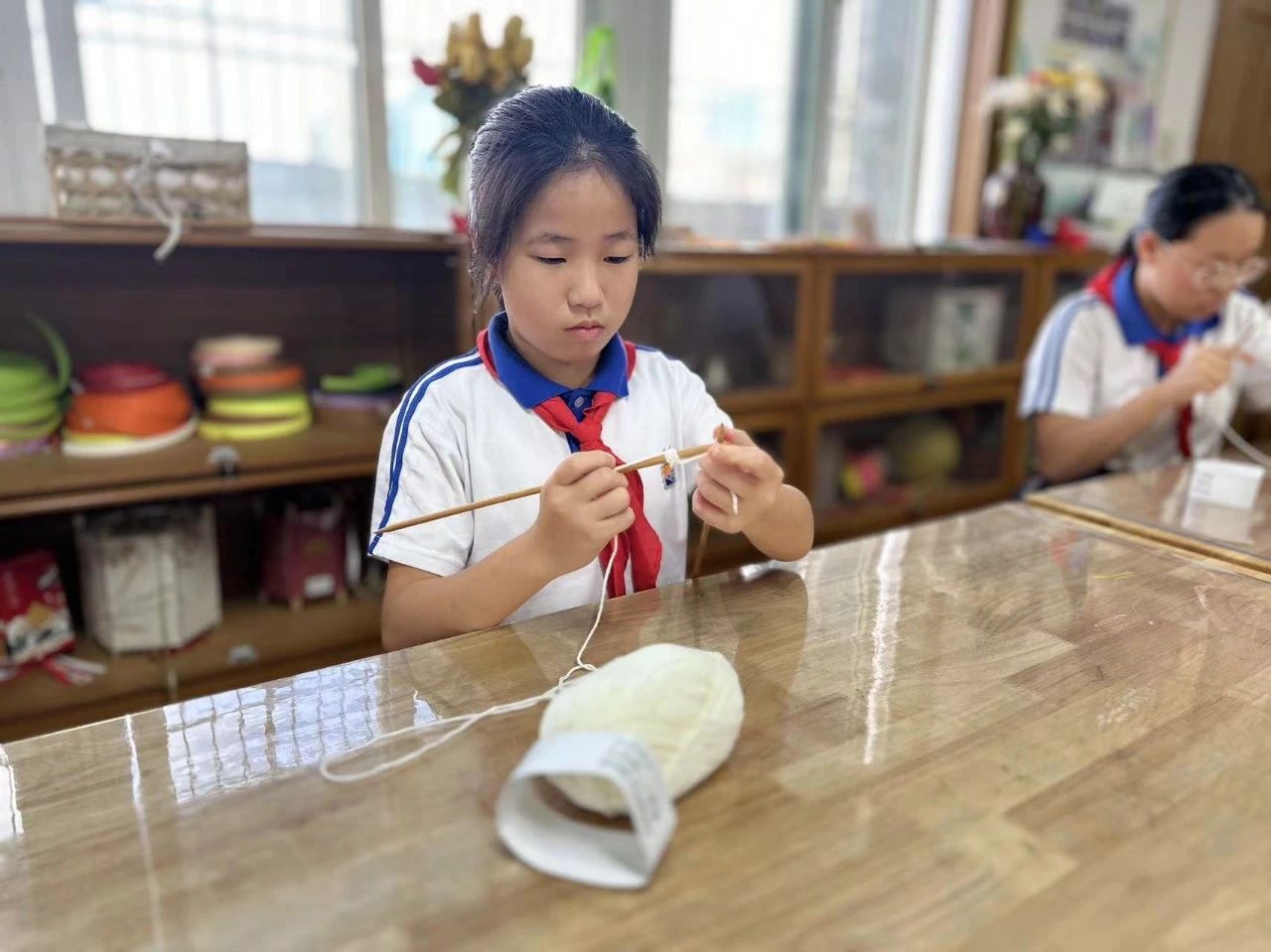 学生们将比赛规则记心间,认真缝制、手捏针线、穿过布料、拉紧线头,在劳动中学会面对遇困难时如何冷静思考并快速解决。