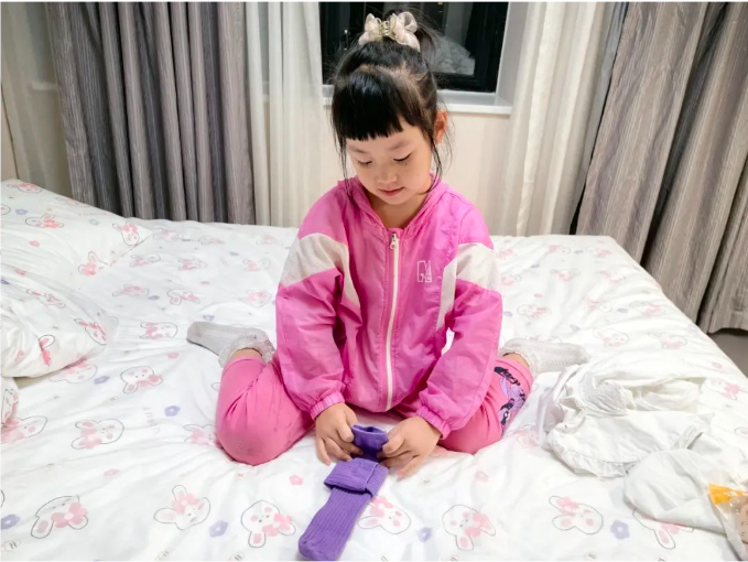 系鞋带,是一项看似简单但实际上需要一定技巧和耐心的活动,两只“兔耳朵”要松紧适度,大小一致,十分考验学生的手指的灵活度。