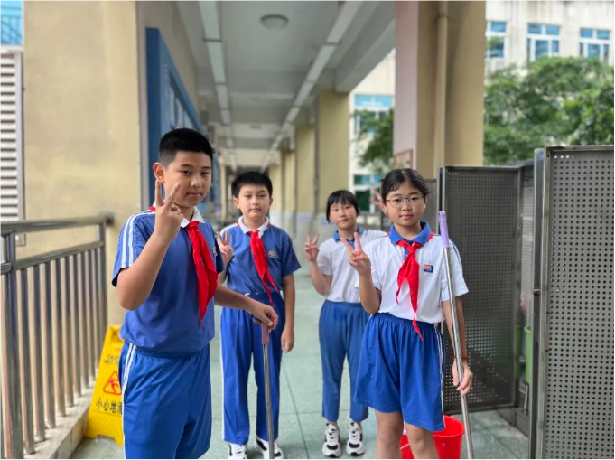4-6年级的学生利用午写的时间到学校各个楼层进行清洁任务,打扫廊道,拖走廊、整理工具柜,每天一个班级,大家分工有序,合作愉快,成为我们校园环境的守护者。