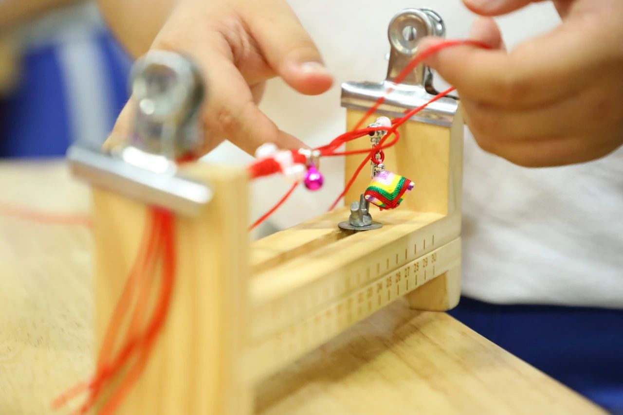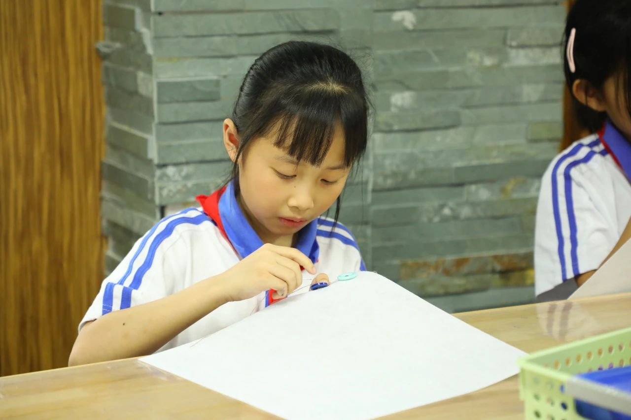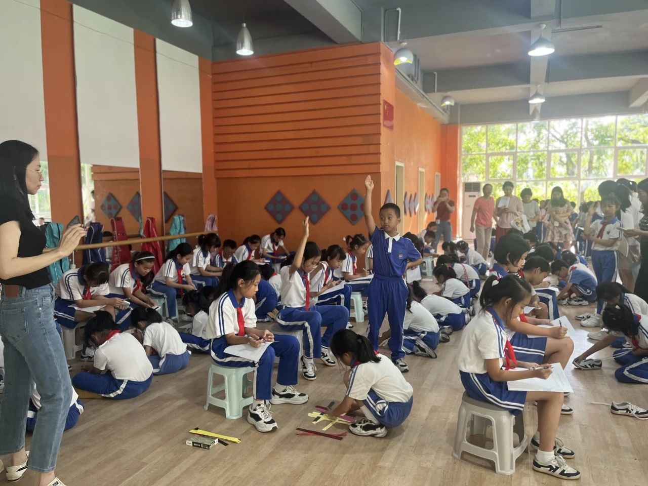 编织,学生用经纬编织的手法将十根彩色纸条进行编织,这个项目考验的是学生对编织手法的熟练程度和耐心。