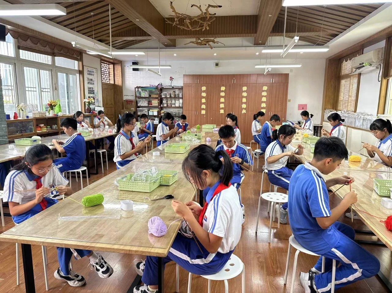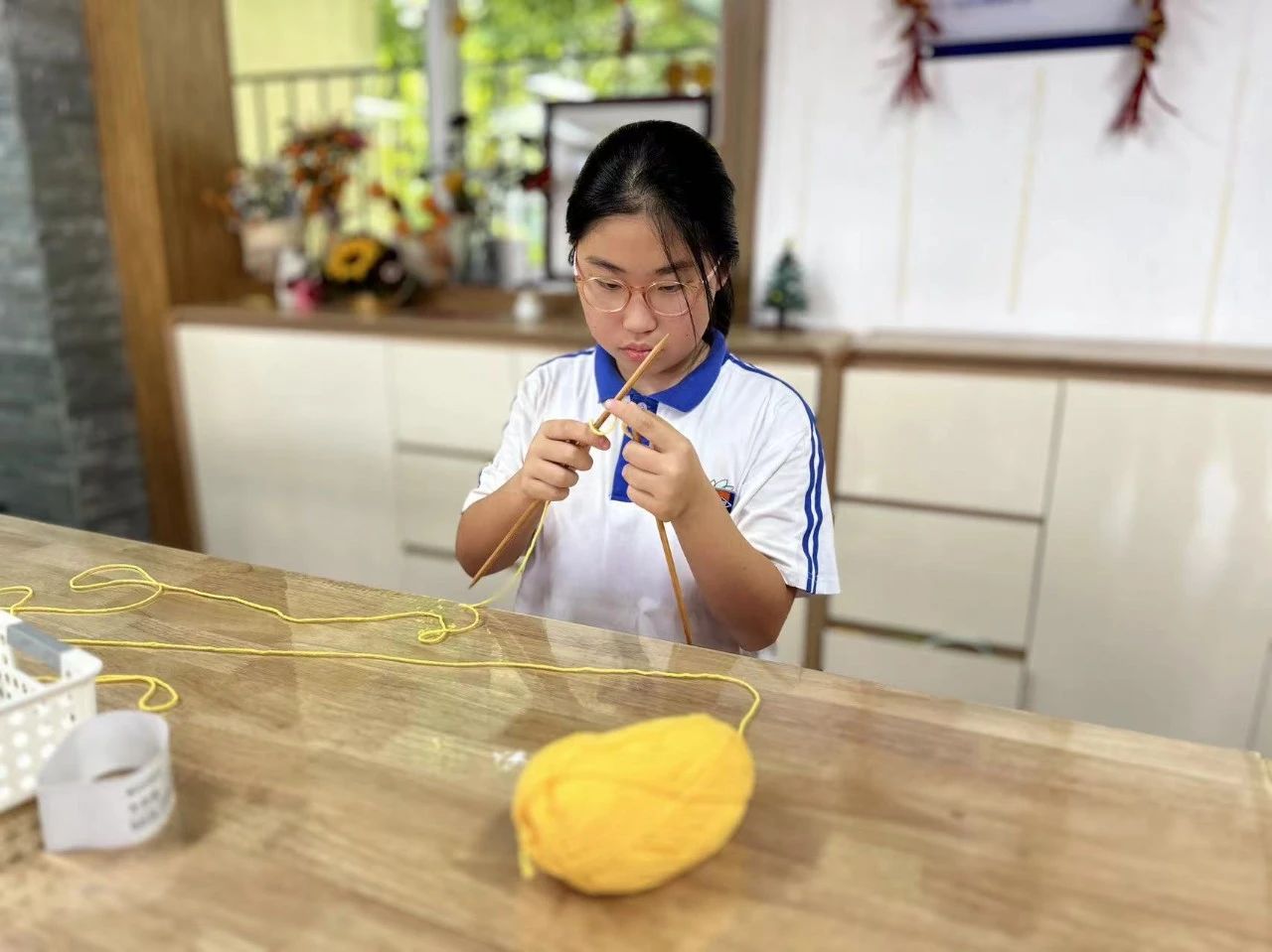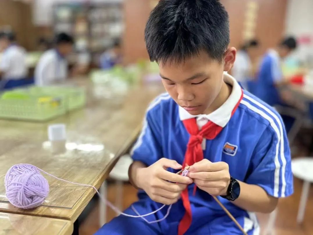 六年级比赛的项目是织围巾。两根小竹棍在学生灵巧的双手下,仿佛变成了魔法的工具,将一根根毛线编织成温暖而美丽的围巾。这次比赛,不仅是一项手工艺技能的检验和展示,也是对学生耐心、细心和创造力的考验,希望借此活动能够让学生在实践中学习和成长,提升他们的手工艺技能和劳动素质。