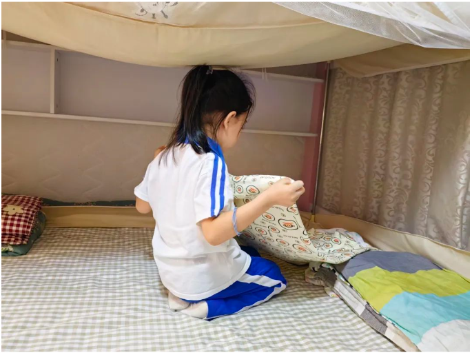叠衣服需要一步步来,确保每一件衣物都被整齐地折叠并摆放好。这要求学生有足够的耐心和细心。