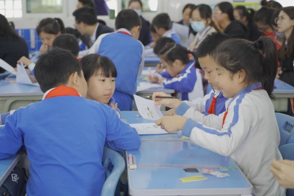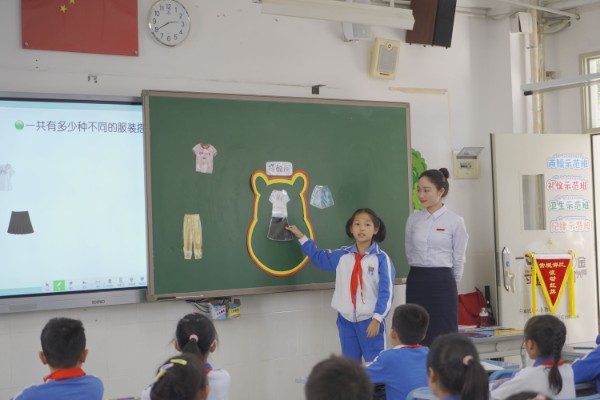 结业式前,工作室学员魏娴老师和三(5)班的孩子们做汇报教学,给我们带上一堂精彩的展示课——《搭配中的学问》。魏老师以学生为主体,利用孩子们熟悉的生活素材引入新课。在探究“2件上衣与3件下装”如何搭配的活动中,引导学生动手摆一摆、连一连、说一说、画一画、写一写,让学生展示并体验搭配的过程。听课的老师们被课堂深深地吸引,既欣赏和感叹孩子们精彩的汇报、多角度呈现的搭配方式,又感受到了魏老师恰到好处的课堂引领和节奏把控。