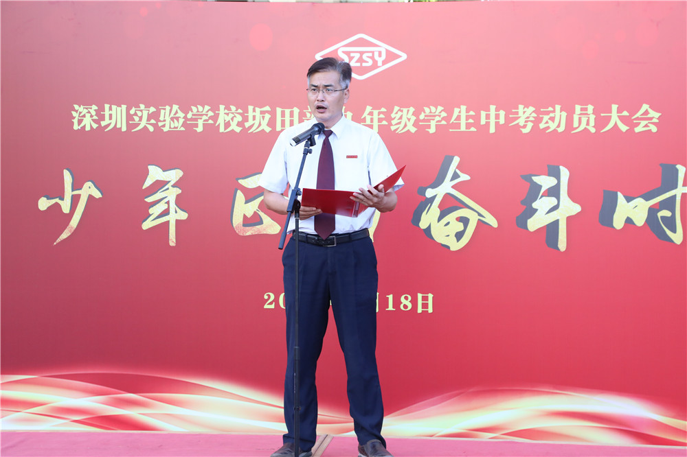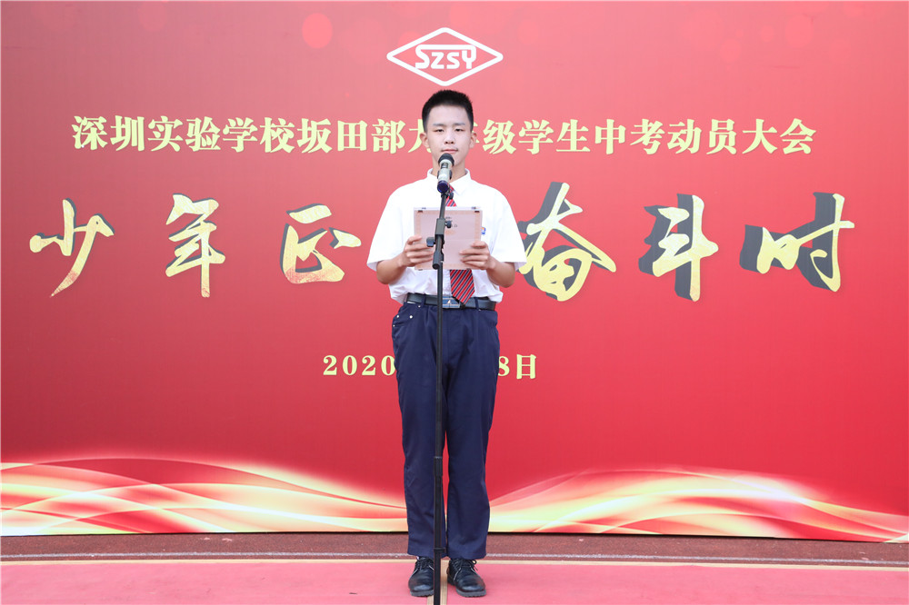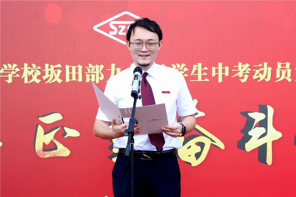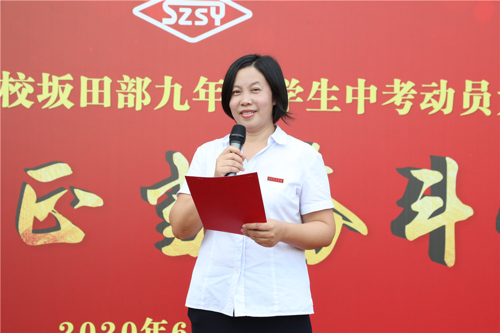 坂田部副部主任兼学生处主任吴立刚在发言中对全体同学提出了希望,并祝愿每一位同学实现自己的梦想。“决战中考!决胜中考!!”的口号喊出了同学们迎战中考的勇气和信心。