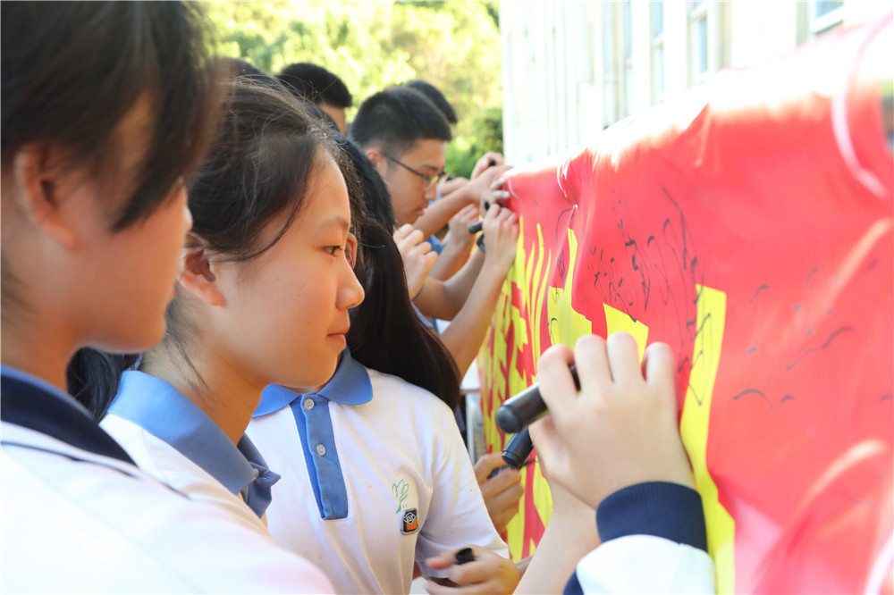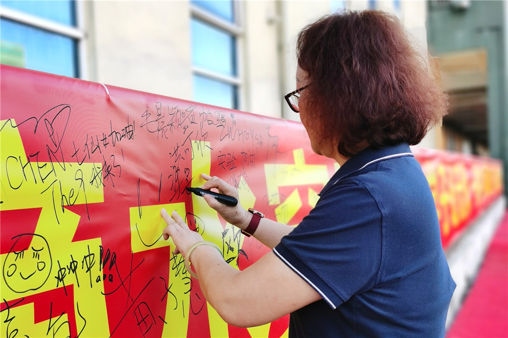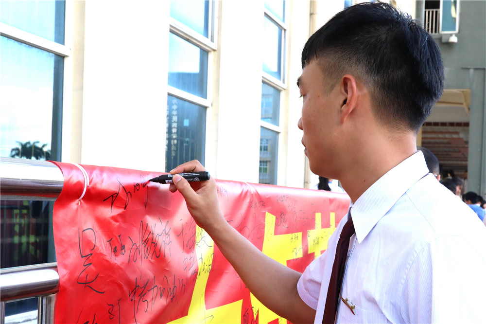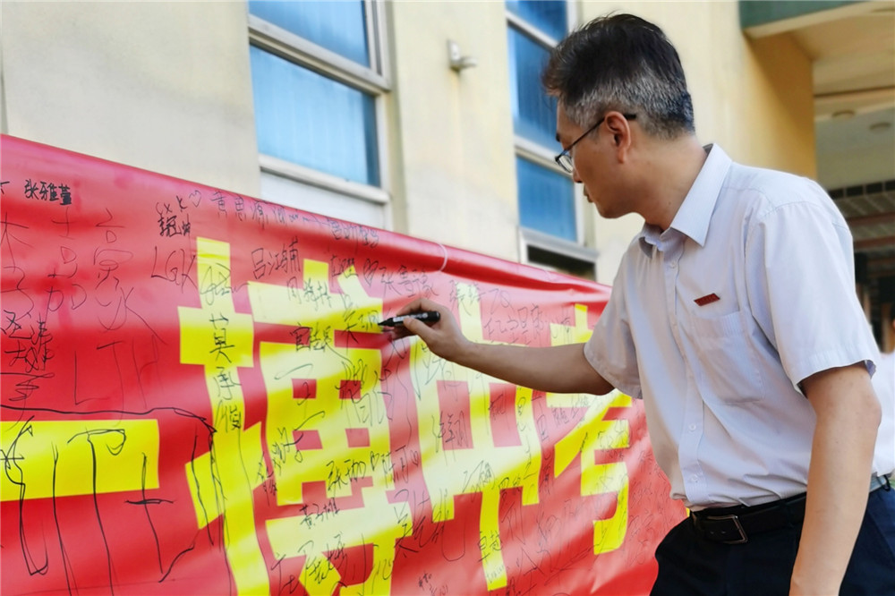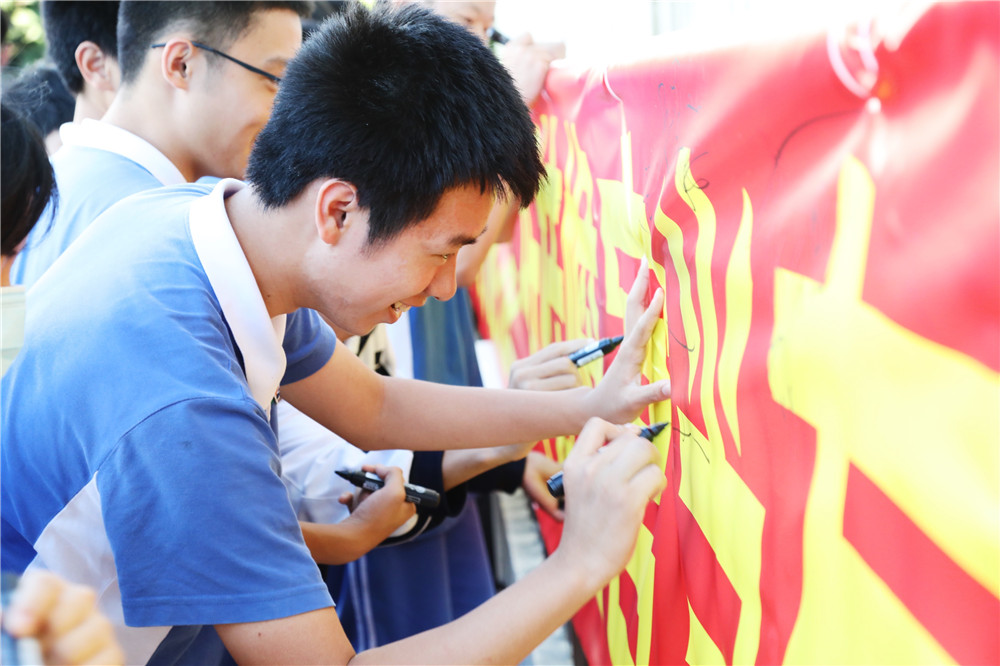 动员大会的最后,同学们跨进“成功之门”并签名明志。(文/九年级组 图/信息中心)