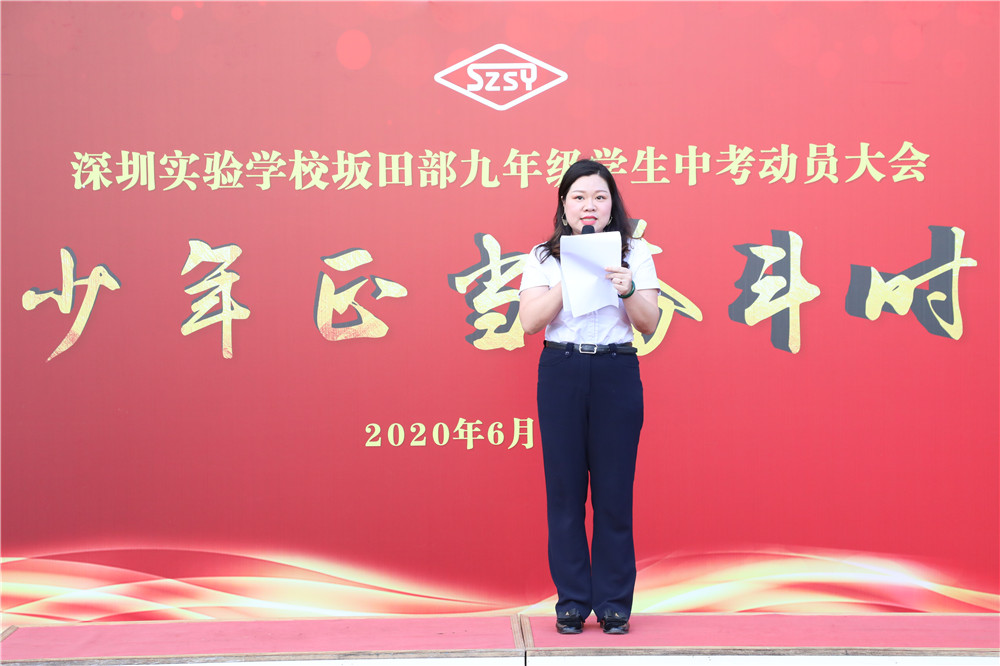 6月18日,在距离2020年中考一个月的日子,坂田部召开九年级全体师生大会,为即将迎战中考的学生鼓劲加油,做学法指导并进行了考前心理辅导。冯景华副校长、坂田部副部主任兼教务处主任吴立新参加了大会,会议由年级主任唐艳春主持。