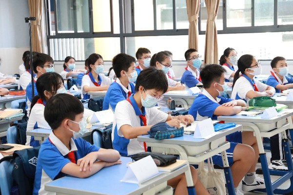 五星红旗高高飘扬,实验校旗迎风招展。2022年9月16日,深圳实验学校坂田校区师生结束居家线上教学返校上课,而让师生、家长尤为兴奋的是坂田校区初中部新校址正式投入使用,朗朗读书声在新校园响起。