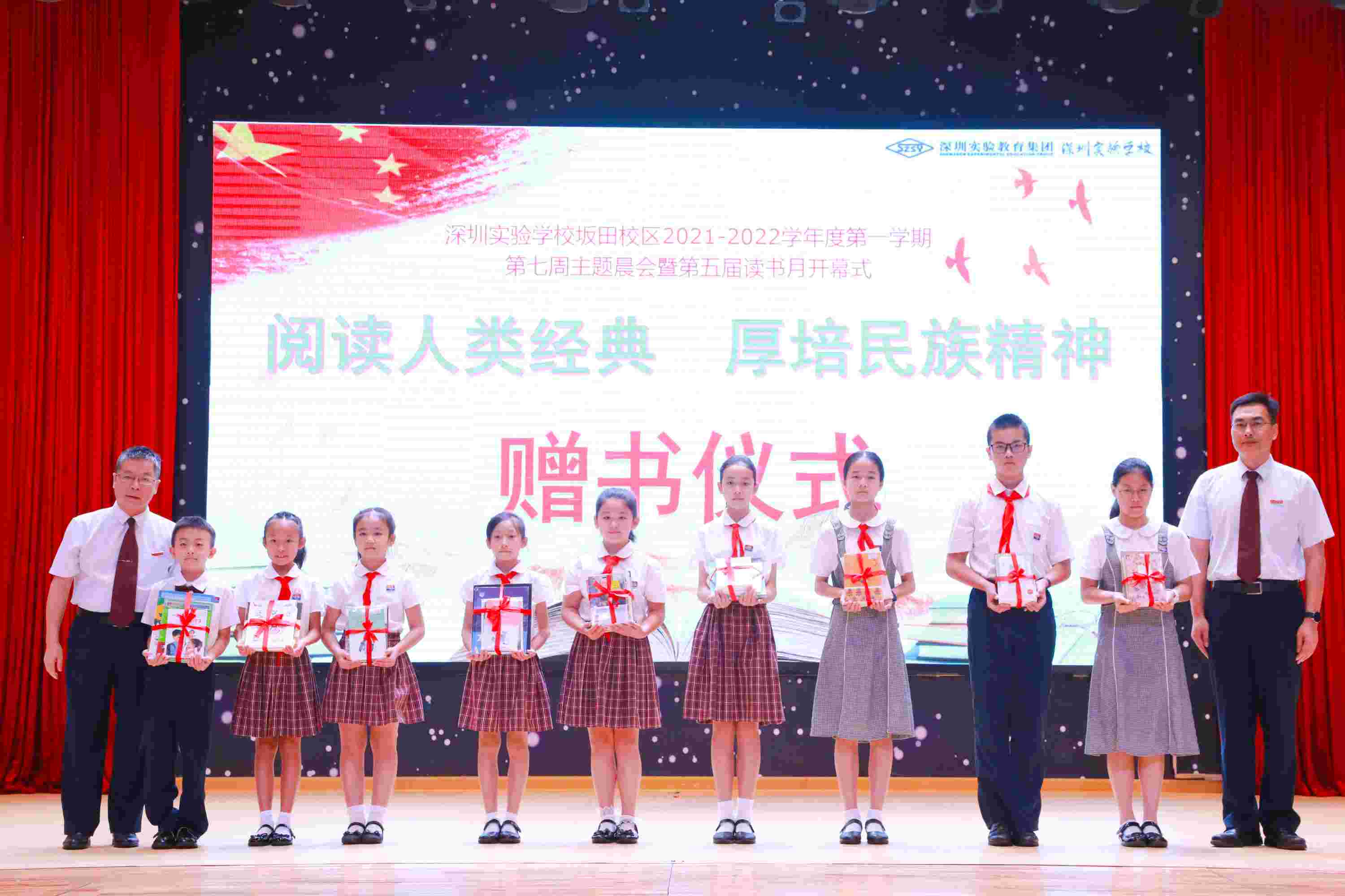 开幕式最后,坂田校区小学部部主任吴立新、初中部部主任吴立刚为各年级学生代表赠送了书籍。我们相信,在书籍的陪伴和浸润下,我们一定会成为腹有诗书、胸怀壮志的实验人。