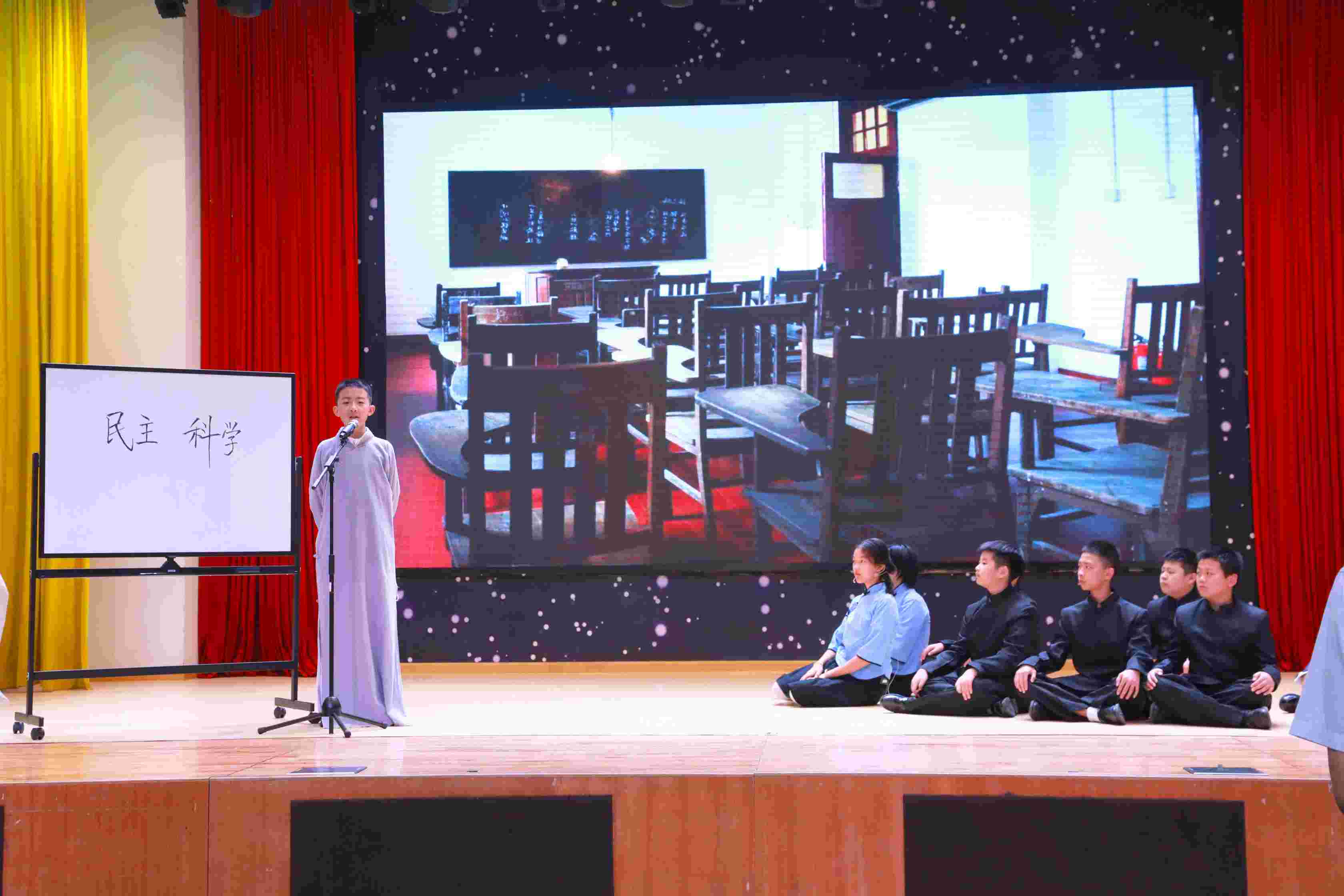 “当代中国的新青年应有思想的觉悟,这个觉悟就是科学与民主,新文化的诞生需要几代人的努力,在座的各位应有成为中华民族脊梁的追求!”话剧表演中,学生们演绎了陈独秀在北大上课时对青年们的教诲,饱满的情绪激起了实验师生的奋斗之心。