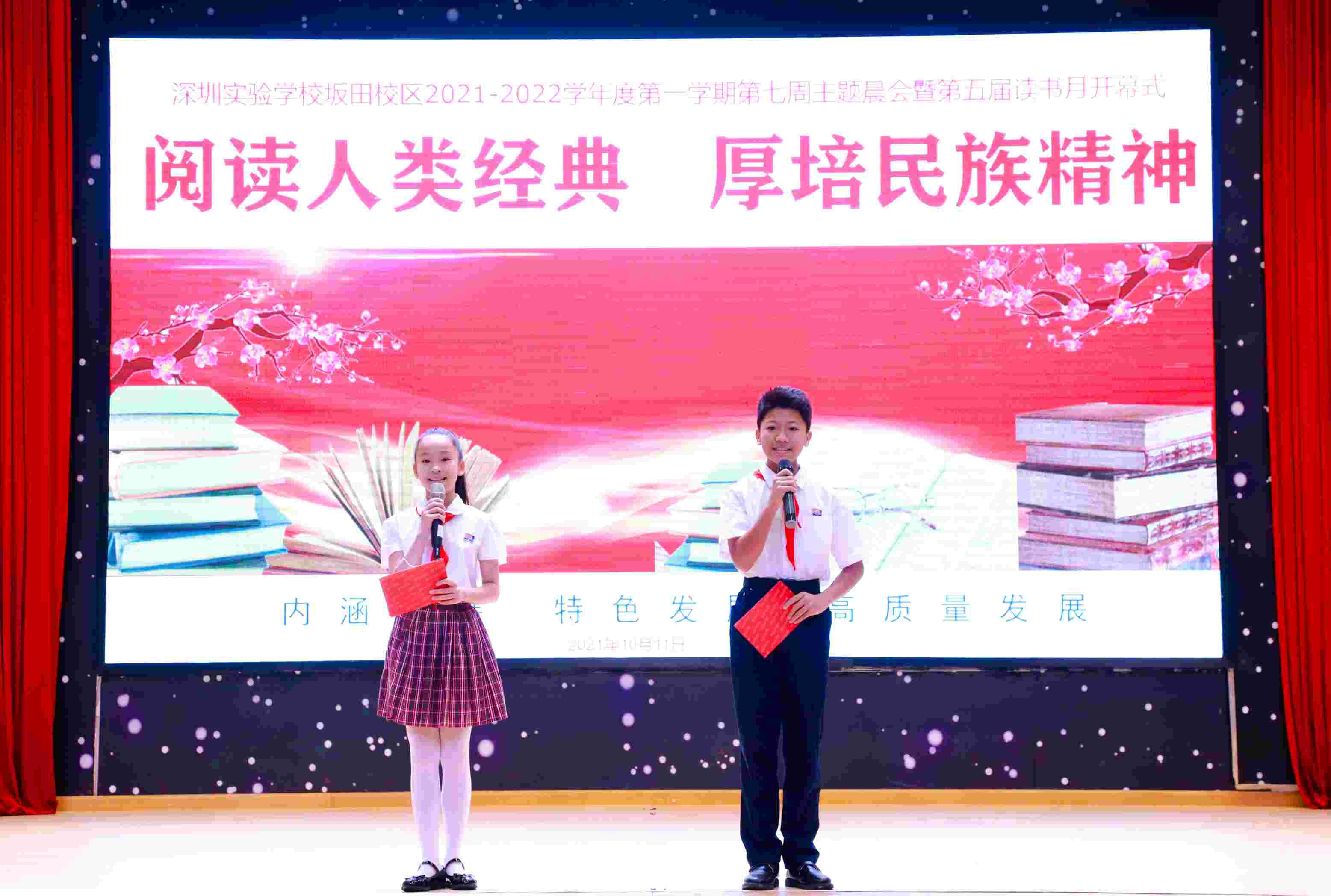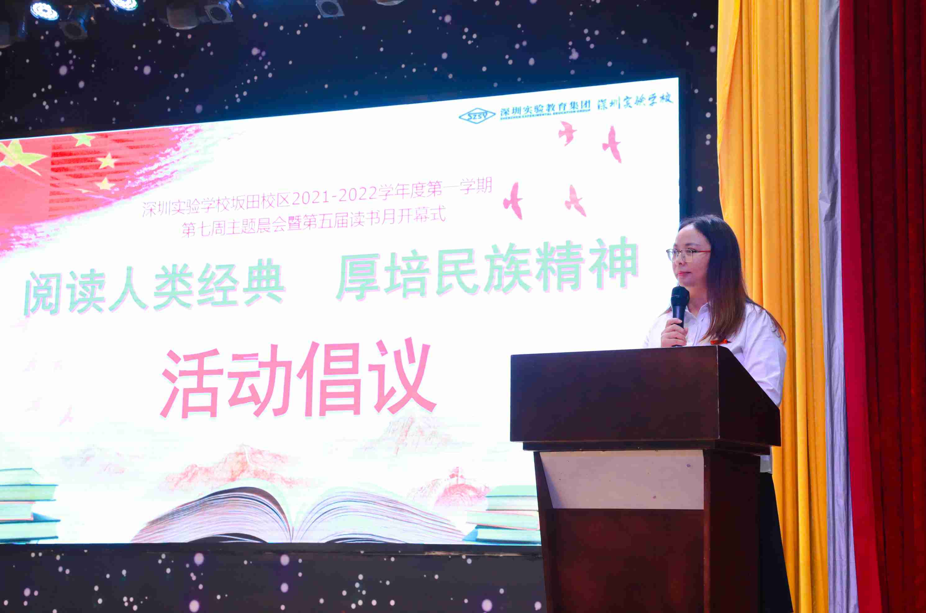 开幕式上,坂田校区初中部语文学科主任吕红兵老师宣读了第五届读书月的活动倡议,她激励师生们多读书、读好书,因为书是我们心灵的良医、灵魂的伴侣、精神的导师。读书不仅可以增智广才,还可以怡情养性、培根铸魂。
