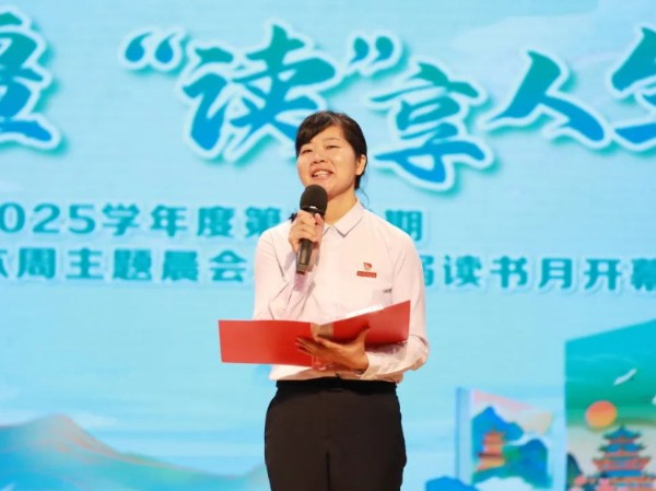 10月9日,在晨曦的第一缕阳光中,一场以“阅界无疆,‘读’享人生”为主题的读书月活动开幕式在初中报告厅举行。小主持人清新而明亮的嗓音,如同清晨的露珠,唤醒了在场每一位师生的阅读热情。