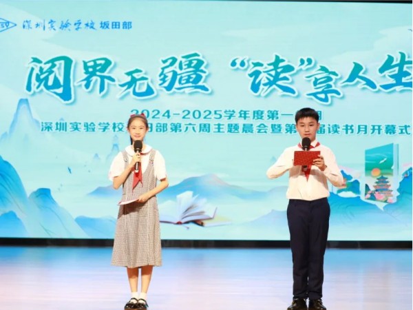 小学语文学科主任陈国芳老师和初中语文学科主任张剑挥老师相继宣读了本届读书月的各项活动,为这场跨界联通的书香盛宴揭开了神秘的面纱。本届读书月,深圳实验学校坂田部将积极倡导多学科联动,全学科阅读,教师积极参与,旨在为全校师生打造一个丰富多彩的阅读世界。