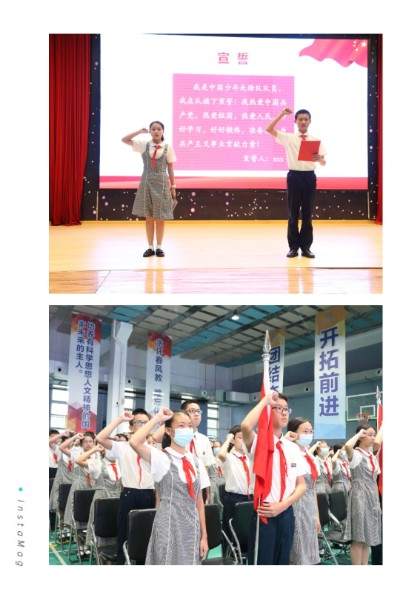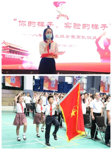 吴立新主任在发言中说,离队仪式是初中阶段的重要仪式之一,是告别童年拥抱青春的第一步,是成长路上重要的里程碑。他勉励同学们健康快乐成长,展现优秀实验学子的样子,即严格自律,注重细节的样子;诚实善爱,乐于助人的样子;全面发展,特长突出的样子。表里如一,文质兼美。