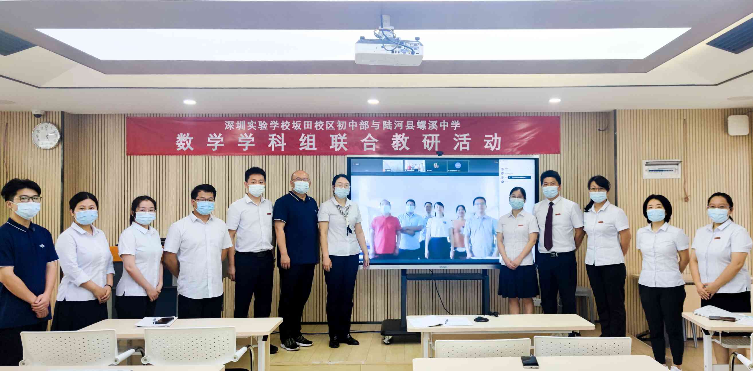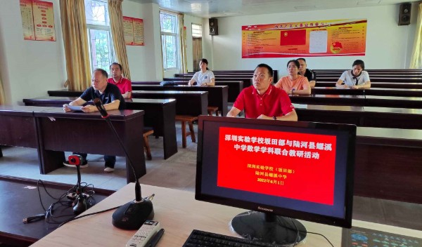 为贯彻《广东省中小学教师校本研修示范校和示范培育学校工作指南》的文件精神,促进优质教学资源共享,形成校本研修新模式,6月1日下午,深圳实验学校坂田校区初中部与陆河县螺溪中学联合开展了数学学科组联合教研活动,两校共19位数学教师参加活动。