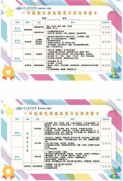 为了让一年级小朋友尽快适应小学的学习和生活,养成良好习惯,深圳实验学校坂田校区小学部根据入学儿童的身心特点,对一年级新生制定了详细的一年级新生养成教育月方案。