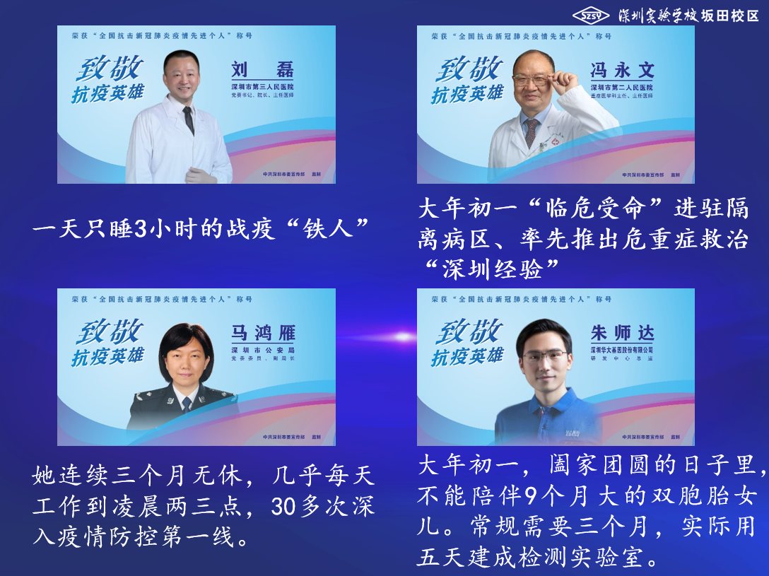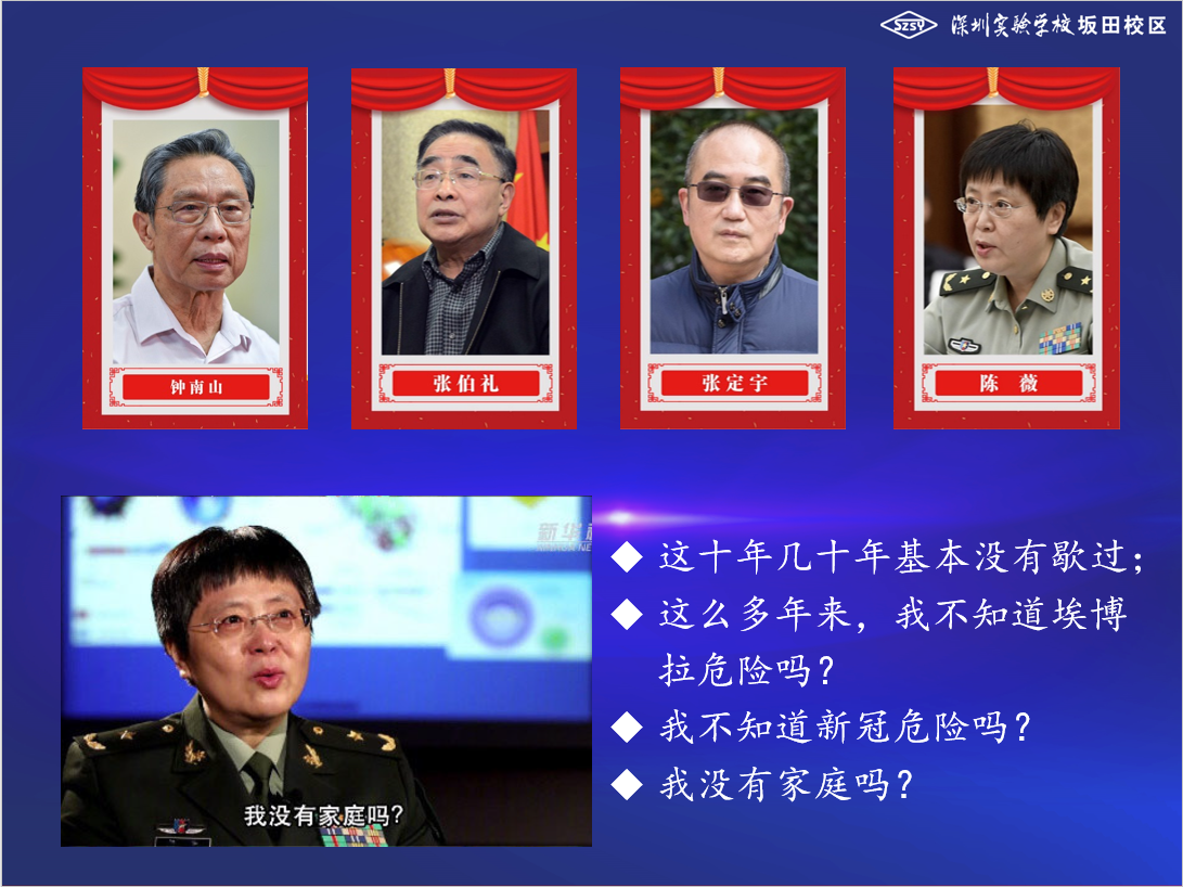 致敬抗疫英雄,学习时代精神,冯总支书记指出,把为祖国效力,为事业献身,为人民服务,为孩子们尽心,当作人生最重要的目标,这是深圳实验学校师生应牢记的倡导性价值观。敬业、创新、严谨、精深,我们肩负时代使命,深圳实验学校师生应有努力成为中华民族脊梁的追求!