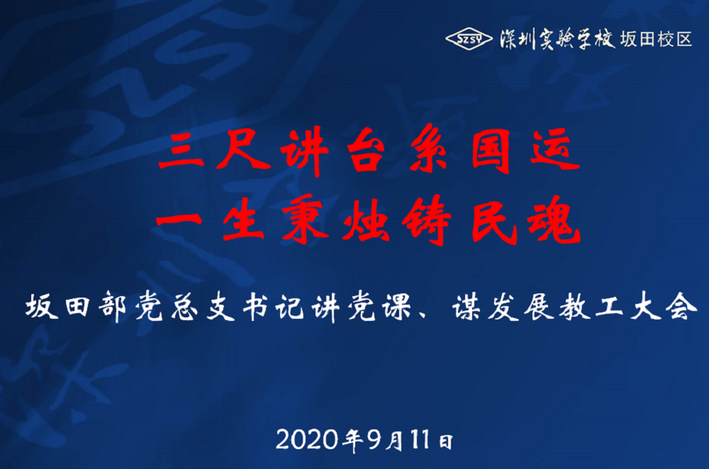 为深入贯彻习近平新时代中国特色社会主义思想,全面贯彻党的十九大和十九届二中、三中、四中全会精神,巩固深化“不忘初心、牢记使命”主题教育成果,9月11日下午,坂田部党总支书记、坂田校区执行校长冯景华同志围绕“三尺讲台系国运 一生秉烛铸民魂”为全体党员、教工讲专题党课。