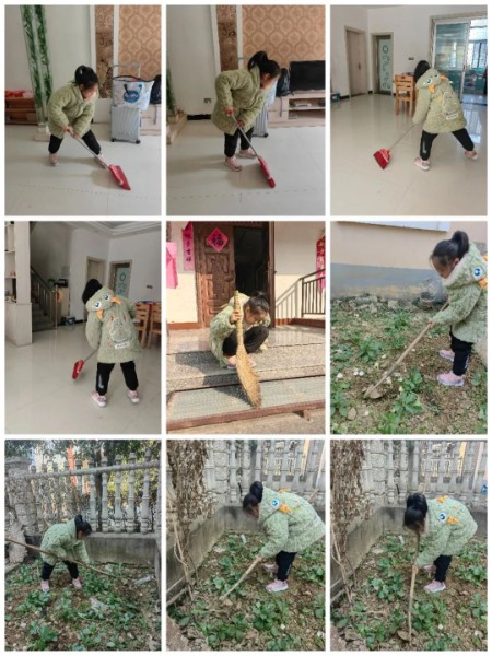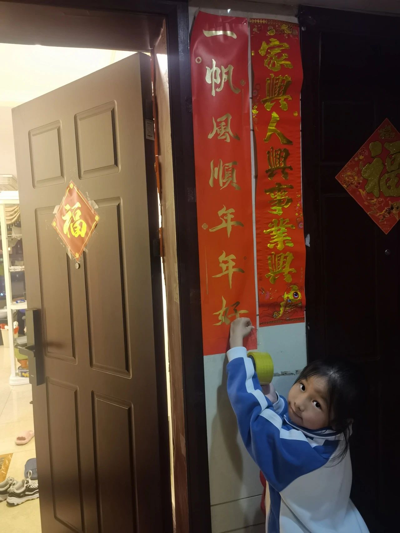 扫地、拖地、擦窗户,家里打扫得干干净净;贴春联、剪窗花、挂灯笼,家里布置得红红火火。队员们还使用家中的废旧物品,在家人的陪同下制作了一份份春节装饰品,创意十足。