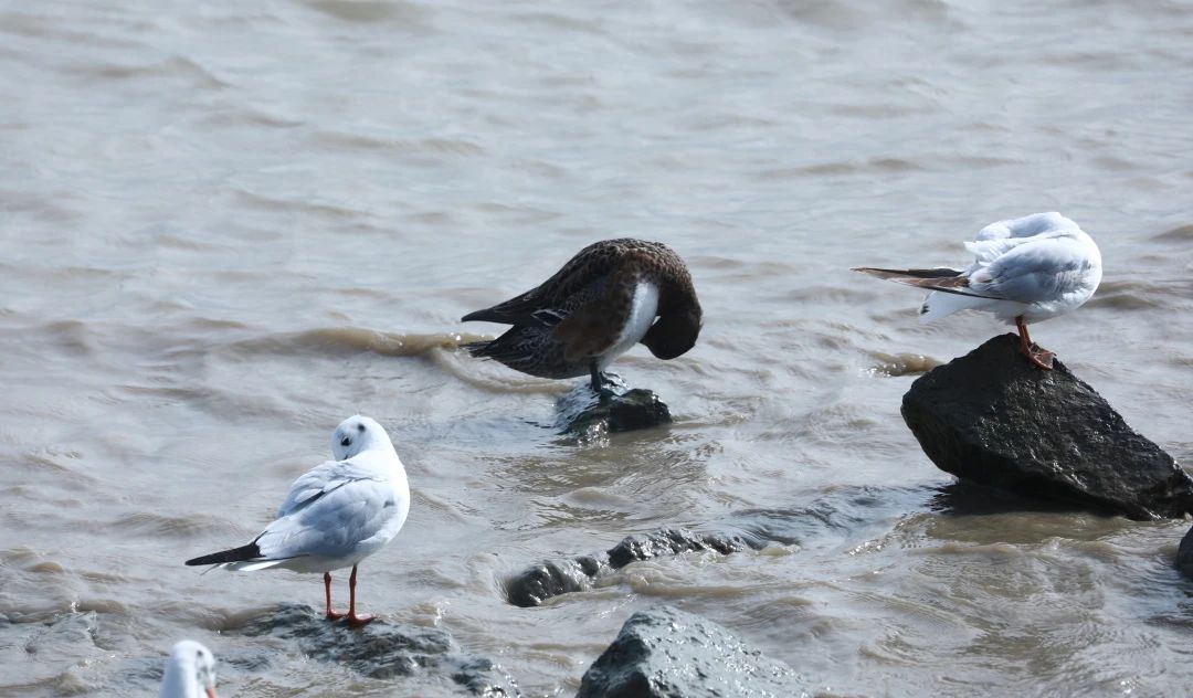 候鸟观察:同学们手持望远镜,专注地观察赤颈鸭、白鹭、黑脸琵鹭、反嘴鹬等鸟类,记录它们的特征和行为。