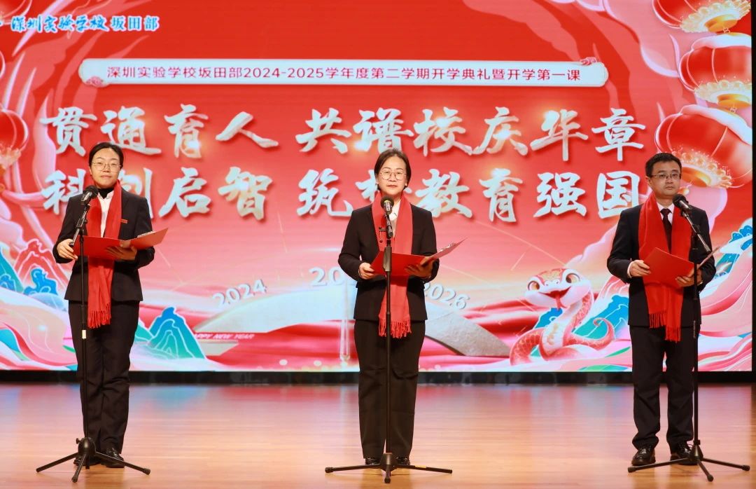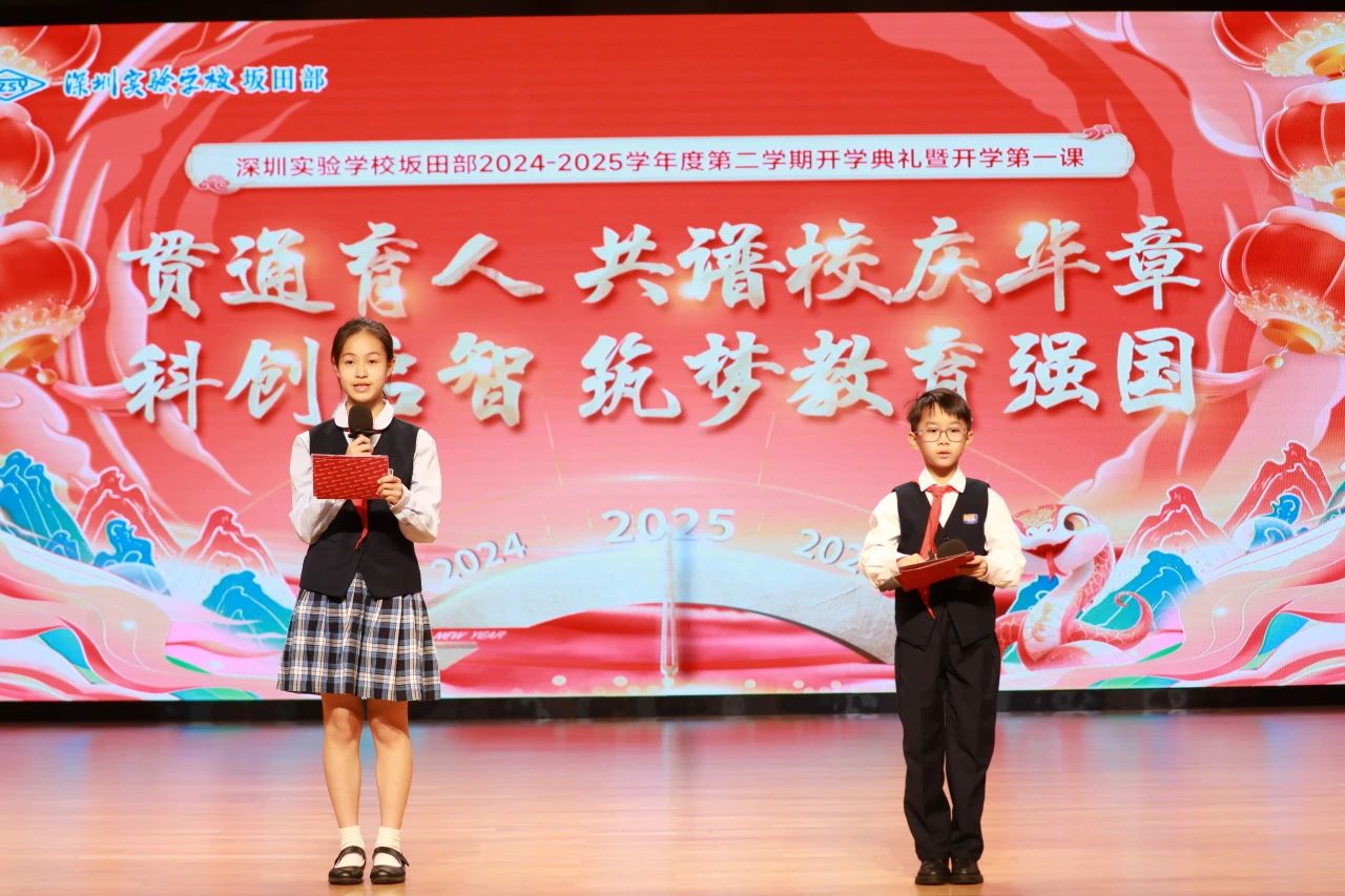 2025年2月13日,深圳实验学校坂田部在初中报告厅隆重举行了2024-2025学年度第二学期的开学典礼。本次典礼以“贯通育人,共谱校庆华章;科创启智,筑梦教育强国”为主题,旨在激励全体师生在新学期中继续追求卓越,共同书写学校发展的新篇章。
