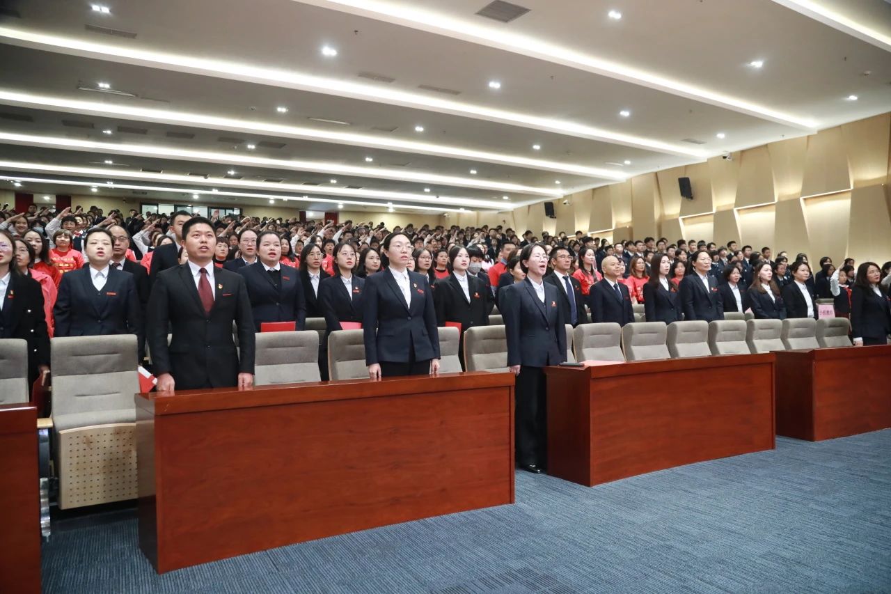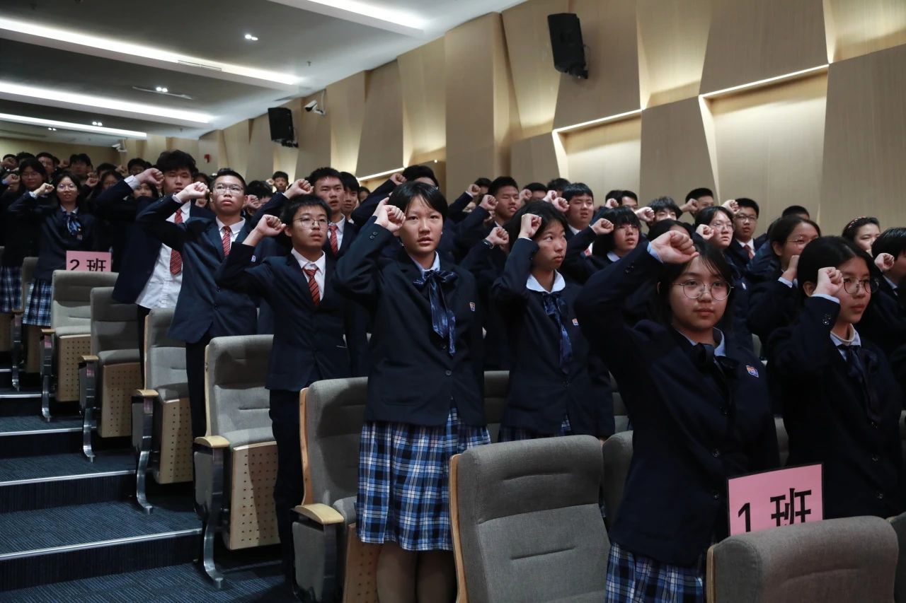 大会尾声,全体九年级教师迈着坚定的步伐登上舞台,他们的目光中闪烁着坚定的信念与无私的奉献精神。在庄严的氛围中,他们高举右拳,铿锵有力地宣誓,向学生们传递着最坚定的承诺:“精诚团结,科学备考。全力以赴,共创辉煌!”在全体教师的见证下,九年级全体学生以青春的名义宣誓:“目标明确,自律自强。勤学苦练,意志如钢。超越自我,团结互助。全力以赴,共创佳绩。不负父母期盼!不负恩师厚望!不负青春理想!”
