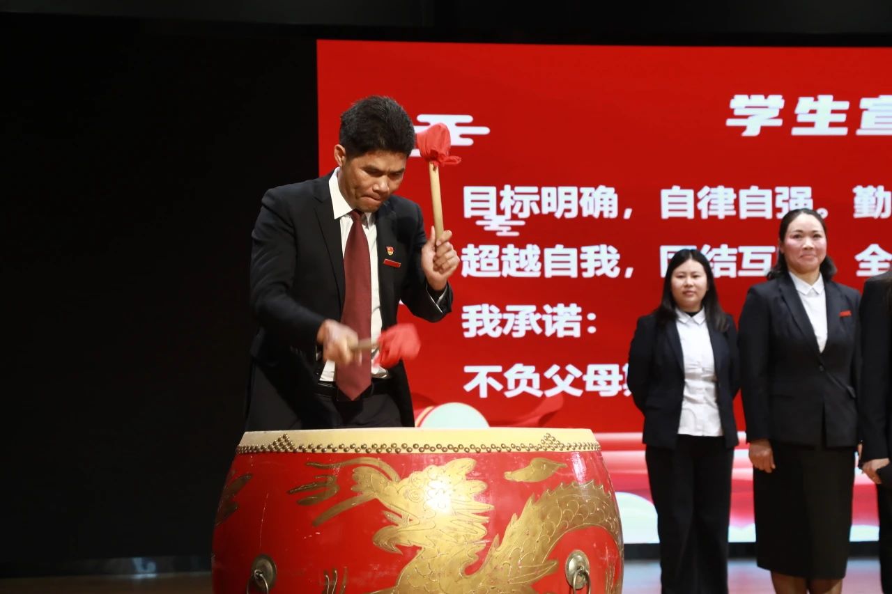 随后,吴柏松老师击鼓助威,各班依次呼号,年级呼号响彻全场。鼓声与呼号声交织在一起,象征着学生们对中考的坚定信念与无畏斗志。