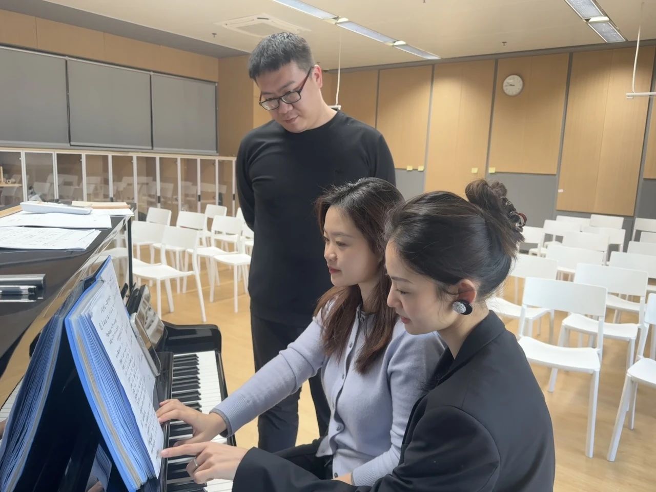 时间紧,任务急。接到通知时离市直属学校初赛不到20天。初中音乐组的朱悦雅、武茜两位老师迅速选定比赛曲目和参赛班级,并和八(10)班班主任单文老师拟定排练方案,并迅速开展排练。