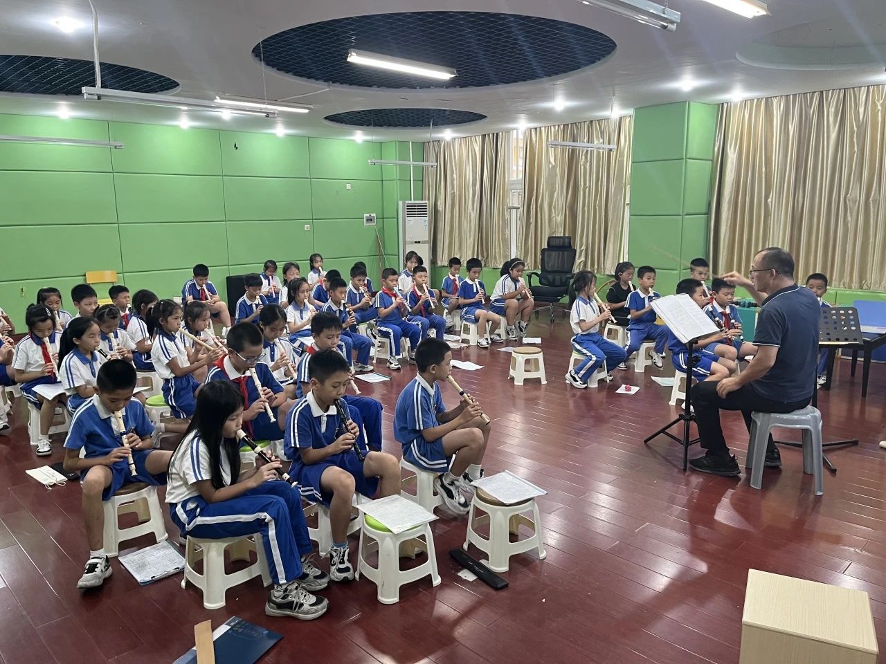 未雨绸缪方得先机。在预判下半年将可能举办市班级小乐器比赛后,经请示,小学音乐组杨光晖、练帼锋两位老师主动提前出击,遴选出三(2)班参加小学一至三年级组备赛,并在班主任邓宇君的支持下,利用期末考试后、暑假等业余时间集训,为比赛奠定良好基础。