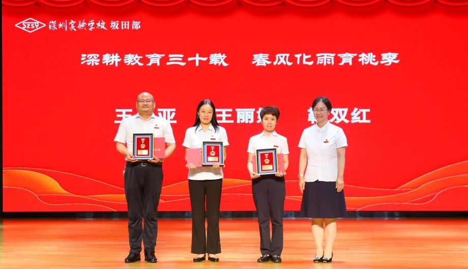 大会同时举行功勋教师表彰仪式。王光亚、鞠双红、王丽娜三位教师荣获“在校服务满三十周年”荣誉表彰。他们三十年如一日扎根教育一线,默默耕耘、无私奉献,培育了大批优秀学子,赢得了师生广泛尊敬。张楠执行校长为三位教师颁发荣誉证书,全场响起热烈掌声,向这份执着坚守致以崇高敬意。