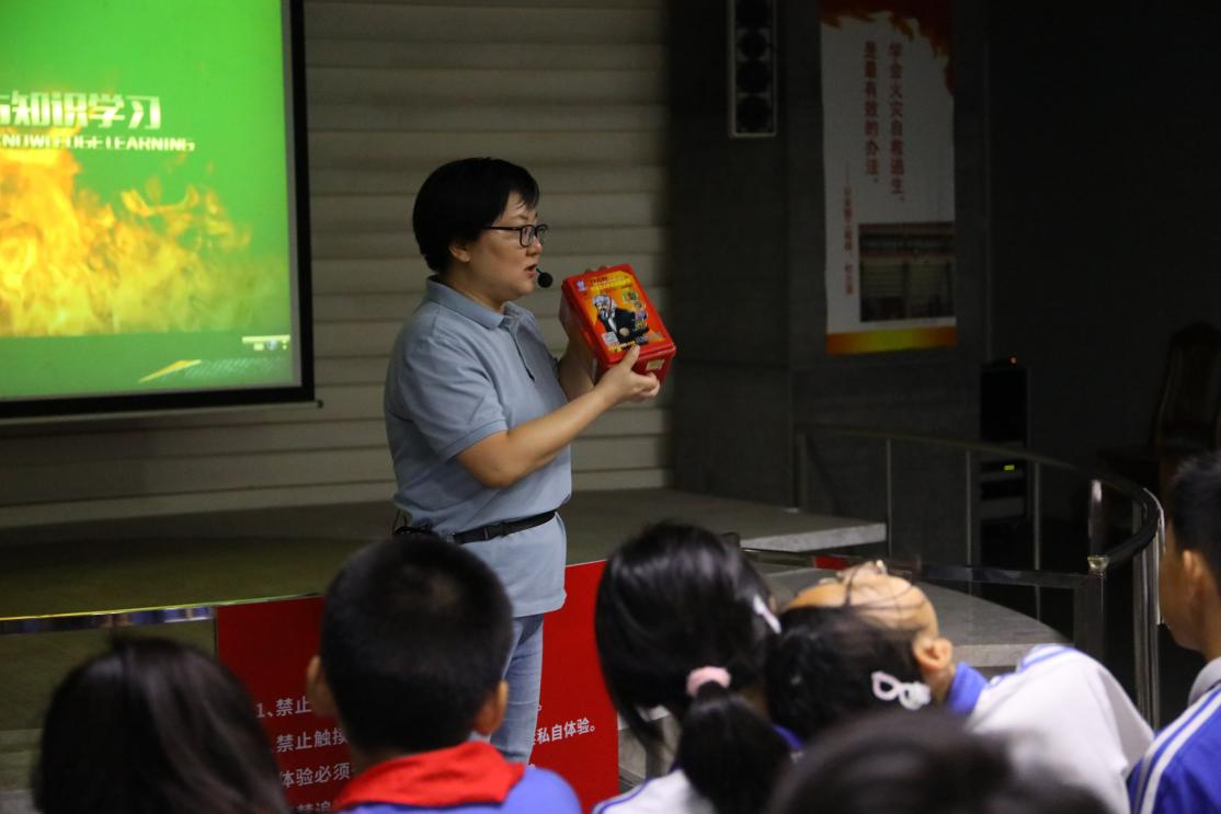 在消防安全馆,学生学习了防烟面罩、灭火器的使用知识以及高楼火灾自救逃生技巧,并分组体验火场逃生;