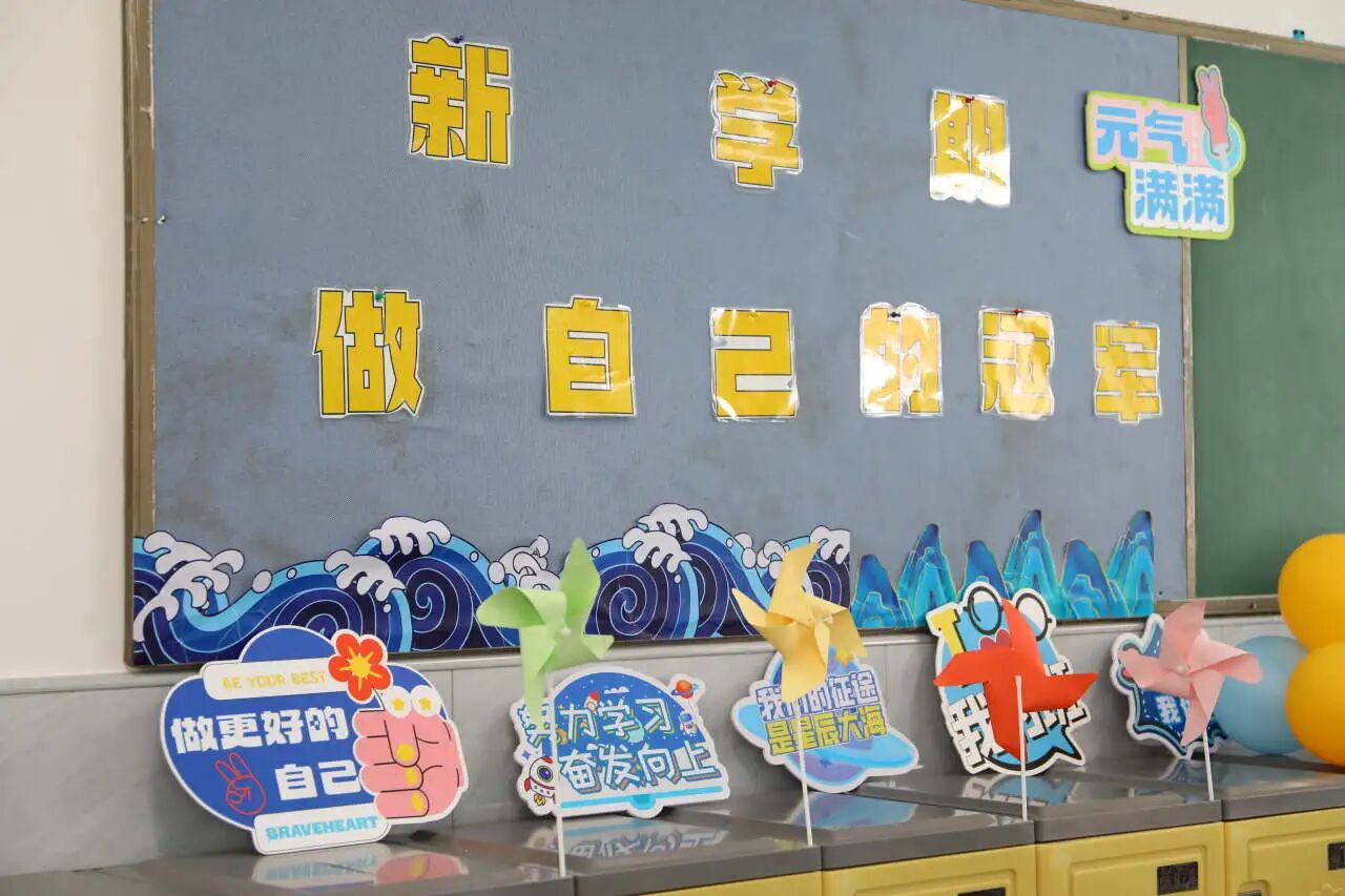 走进教室,崭新的课本整齐地摆放在课桌上,等待着孩子们去探索知识的奥秘;黑板上,老师精心绘制的卡通画让教室充满了童趣。