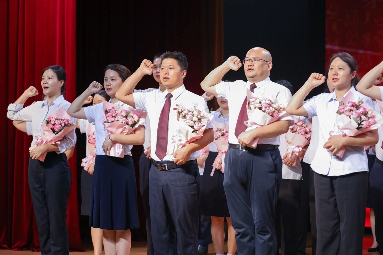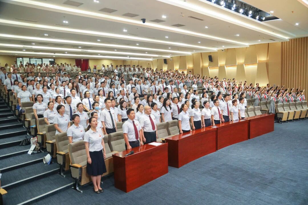 在国歌的雄壮旋律里,五星红旗冉冉升起,全体师生恭敬肃立、齐唱国歌,心中满溢着对祖国的深情与对教育事业的崇敬。