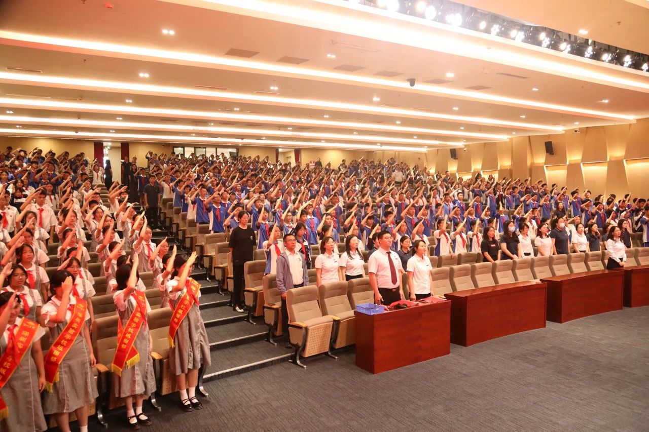 为进一步加强青少年的思想引领,增强团员意识,激励广大中学生坚定理想信念、勇担青春责任,深圳实验坂田部于2025年5月27日隆重举行了主题为“成长蜕变·勇担责任”的八年级离队入团仪式。本次活动是少先队员向共青团员身份转变的重要见证,是同学们人生旅程中一段庄重而难忘的经历。