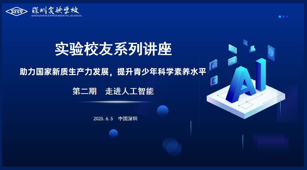 40载风雨兼程,深圳实验学校始终站在教育创新的前沿。此次校友论坛,既是40周年校庆的延续,更是一次面向未来的教育实践。它让师生们看到,科技不仅是冰冷的代码,更是承载着人文温度与社会责任的时代引擎;它让实验精神在科技浪潮中焕发新生,激励着新一代实验人以更开阔的视野、更坚定的信念,在中华民族伟大复兴的征程中勇当先锋。