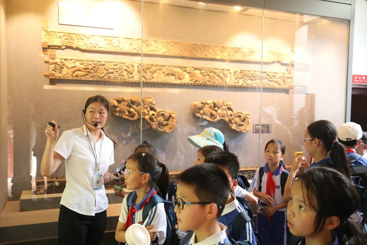 同学们紧跟讲解员,用好奇的目光探索鹤湖新居“三堂四横”的防御体系。当发现围屋外墙厚达80厘米时,有同学现场用成语形容自己触摸到的夯土墙。那时,孩子们纷纷在心间写下“风雨沧桑”“固若金汤”“匠心独运”,把展厅变成了移动的课堂。在寻找排水系统时,孩子们发现了墙角的“铜钱状地漏”,讲解员点赞:“这可是古人‘水为财’的智慧!”