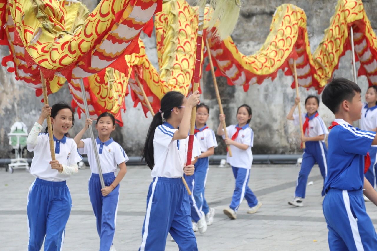 孩子们笑着和老师说:“原来举龙头比想象中沉,但听见鼓声响起,突然明白了什么是‘众人一心’。”