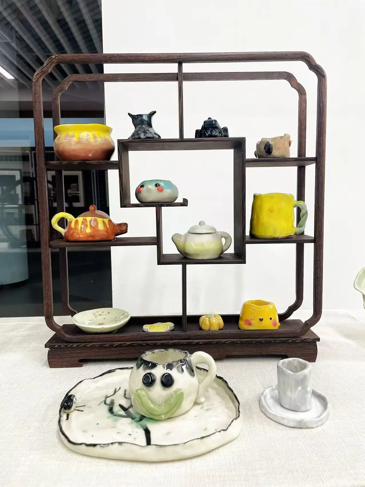 今年成立的“陶然”陶艺社团由杨楠老师担任指导,学生们以陶土为载体,从拉坯塑形至烧制上釉,指尖的温度赋予泥土以灵魂。同学们在薄胎上重绘原创十二时令花卉图案,以当代青年视角重释千年经典。每只杯子代表一个月份,并配以唐诗诗句、篆书“赏”字印及花卉纹饰,形成“一月一花一诗一画一印”的独特设计。同学们的作品不仅是一次艺术创作,更是与传统文化的结合,对非遗的传承和对经典的致敬。