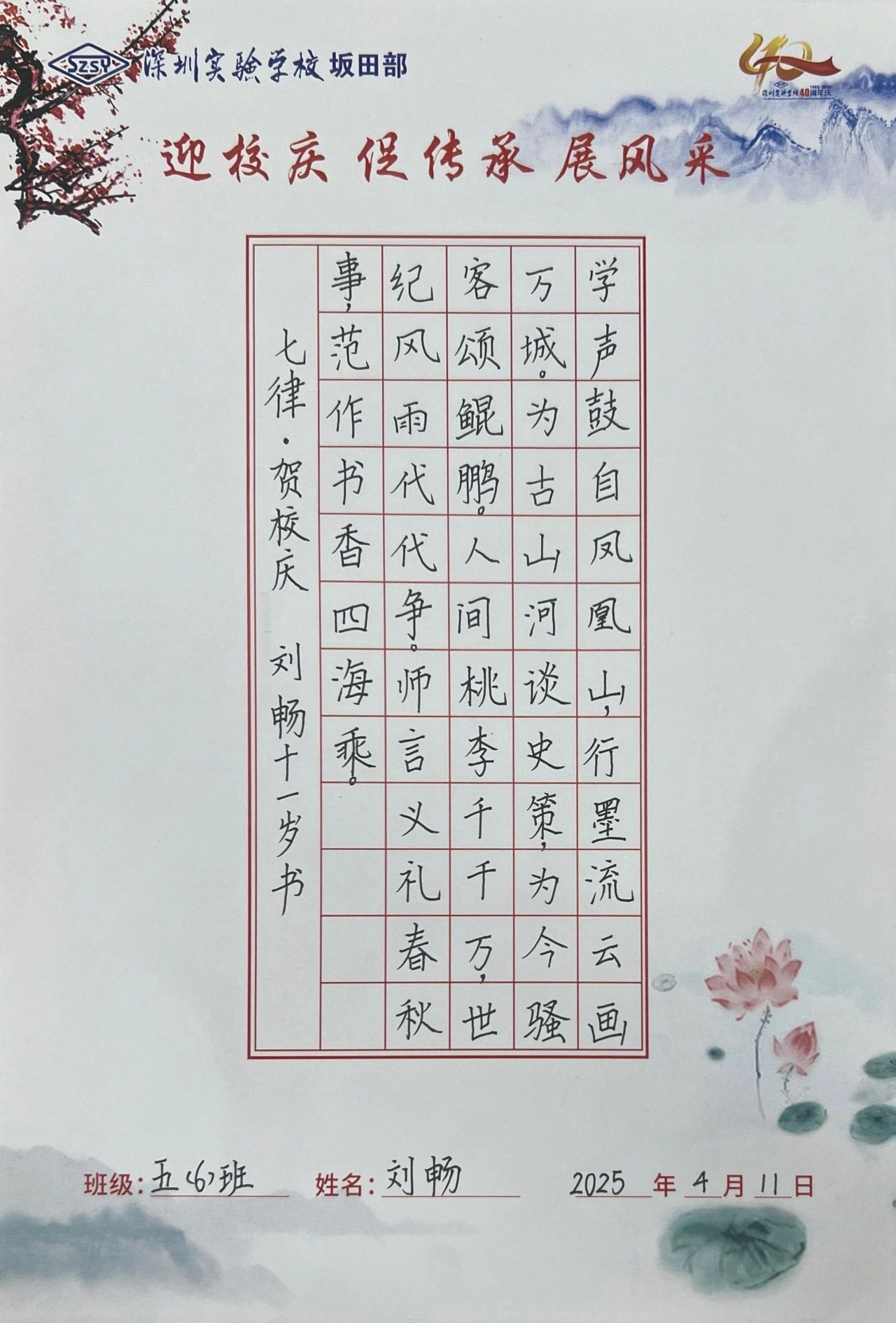 一支毛笔书法社的同学们在庆祝砚池春秋四十载的实验风华少年书中,通过横竖撇捺的间架结构感受汉字的平衡之美,在起承转合的韵律里体会传统文化的深厚底蕴。在静谧的书写中,同学们沉淀了浮躁,随着稚嫩笔触逐渐显现出筋骨,书法正悄然滋养着学生的专注力、审美力和文化自信。期待更多小书法家执笔为舟,在墨海星河中扬帆远航。