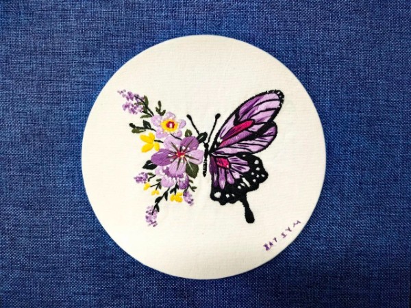 本次展览汇集了初中生运用传统刺绣技艺创作的现代艺术作品。展出的扇面刺绣、蝴蝶图案以及戏曲面具等,不仅展示了平针、打籽等传统针法的精湛技艺,而且通过青少年的视角重新诠释了文化意象。