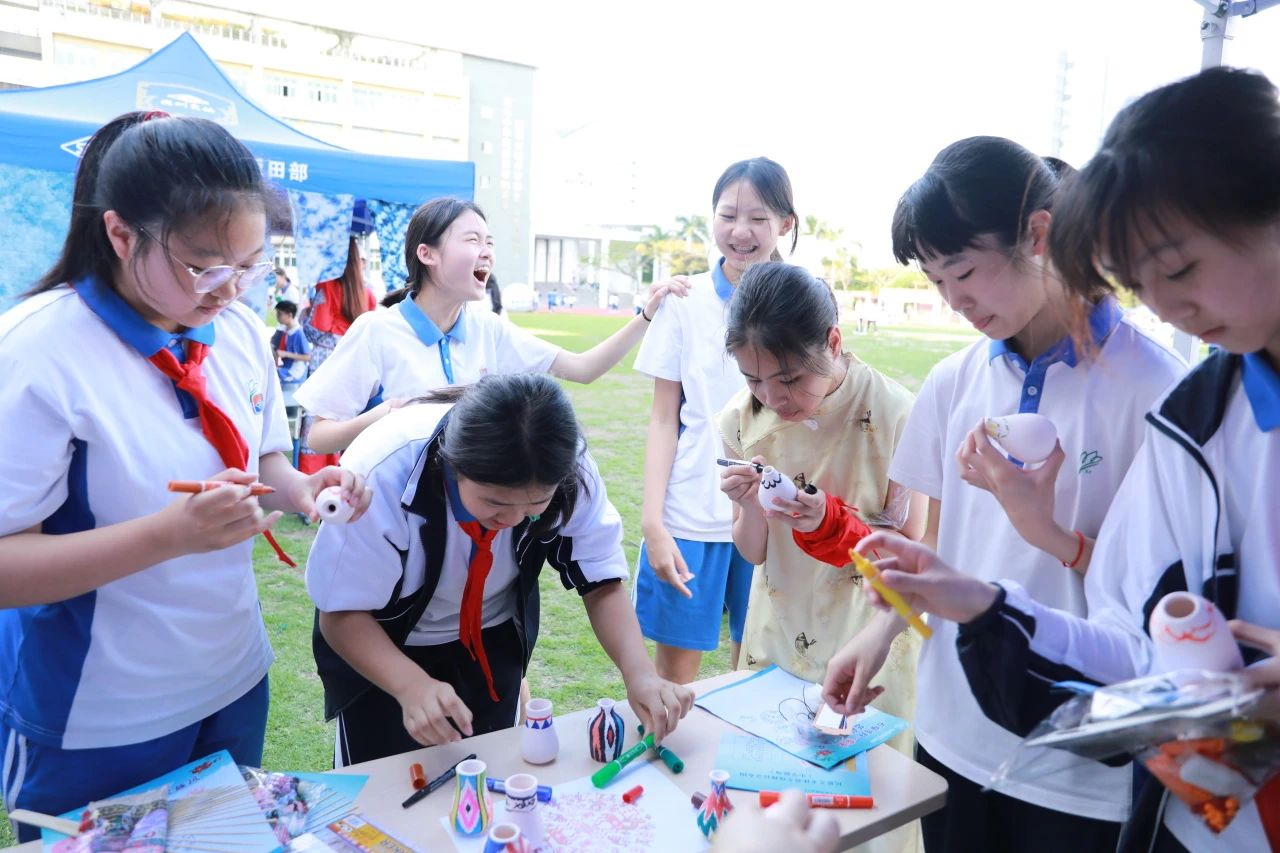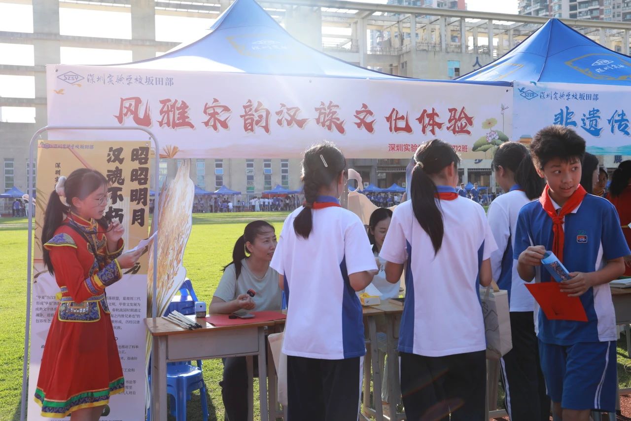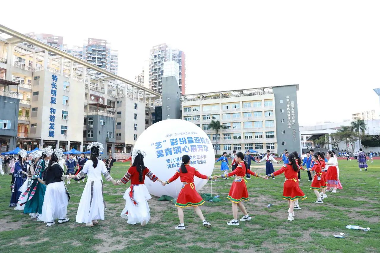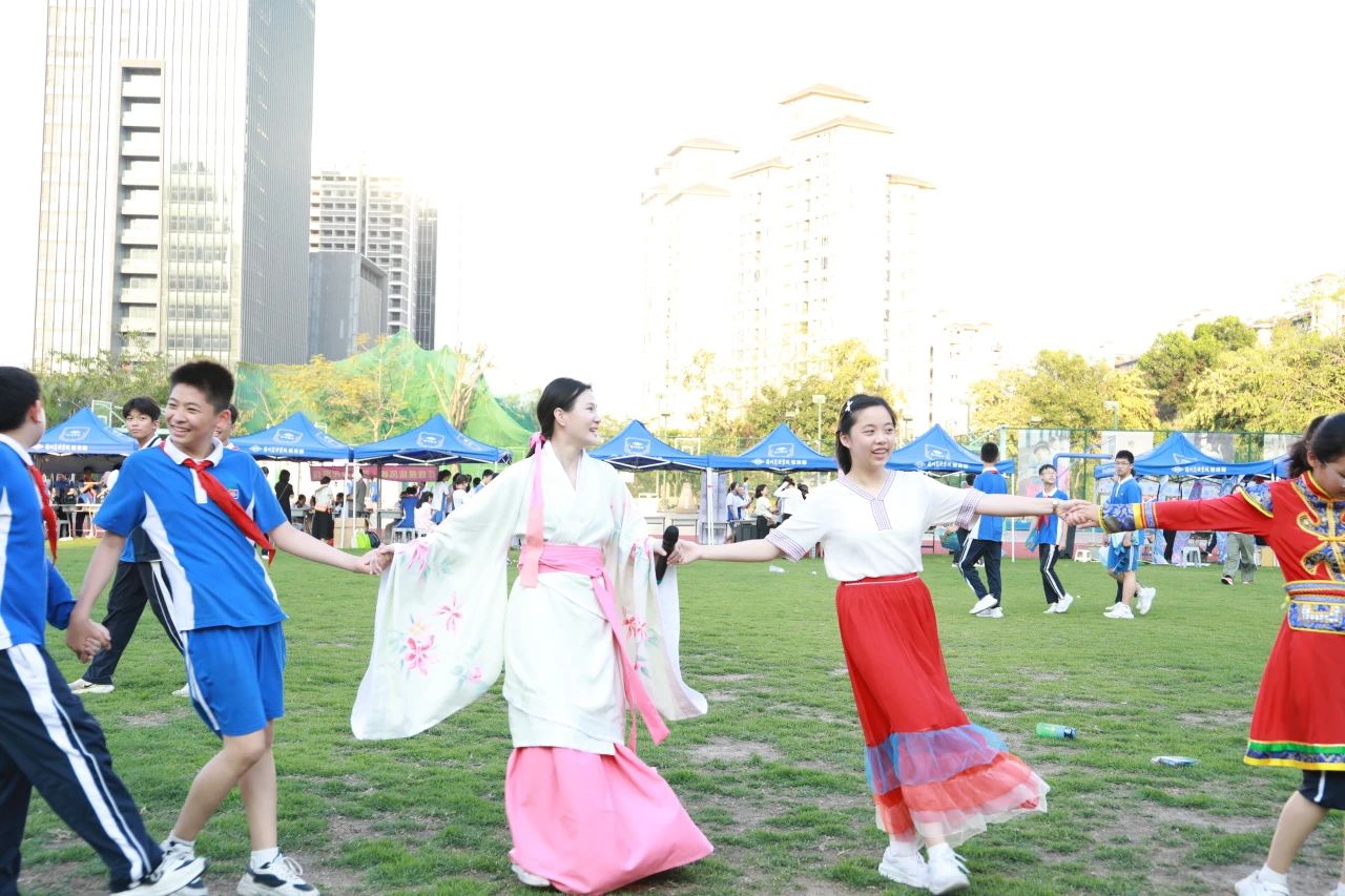 暮春四月,深圳实验学校坂田部的操场上,民族文化盛宴的余韵悠长。师生们齐聚“石榴结籽一家亲,艺彩最炫民族风”民族艺术体验专场,以沉浸式体验与创意互动,献礼校庆40周年。活动通过民族风情展、集章打卡、民族舞蹈展演等环节,让文化认同在少年心中生根发芽。