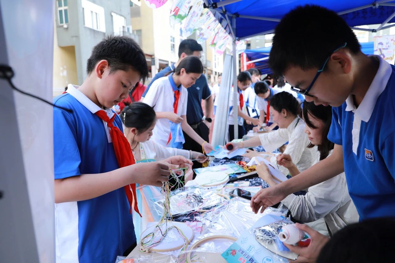 每个展位都围满了前来体验的师生。白族扎染的纹样在指尖翻飞,满族弓箭的力学奥秘引人流连驻足,维吾尔族地毯的绚烂织纹交织延展……当课堂上的文化符号跃动为可触摸的技艺、可感知的韵律、可参与的传承,知识便化作流淌在少年血脉中的文化基因。