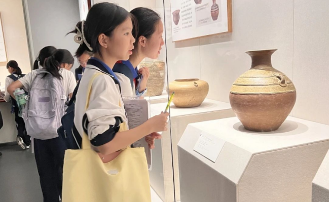 七年级以“陶韵诗心”为主题,联动多学科,在陶瓷展中溯源丝绸之路、鉴赏技艺、畅想未来。文物与学科碰撞,历史与未来对话,孩子们在观瓷悟史中感受文化魅力。