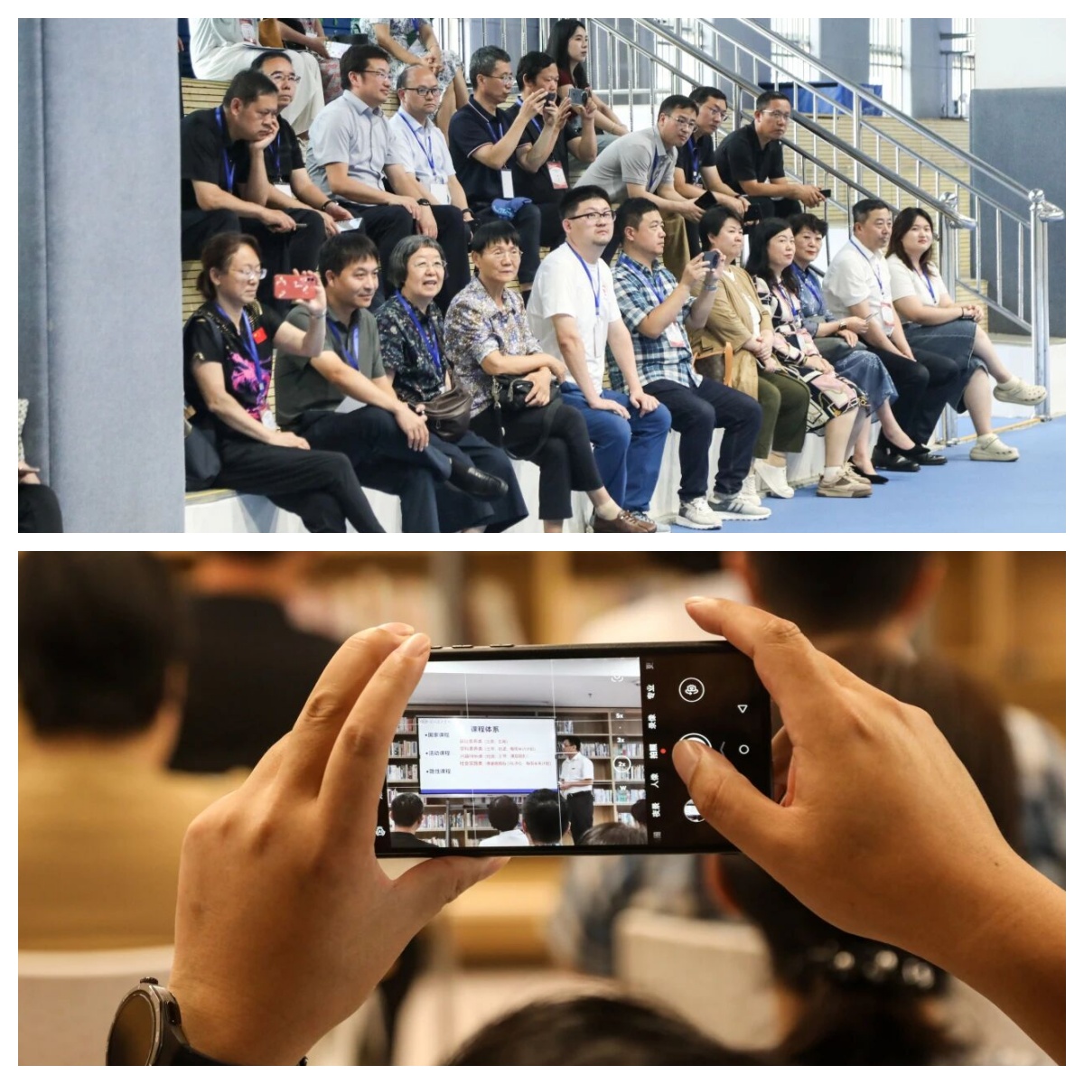 考察团移步初中,在一楼游泳馆和舞蹈教室,学生们展示了游泳课与形体课的规范训练;二楼戏剧社精彩演绎青春风采;三楼麦金画、书法、刺绣、合唱等传统与现代交融的社团项目,尽显校园文化深厚底蕴;科创室的科技项目演示,则生动展现了学生创新思维与动手能力的深度融合。