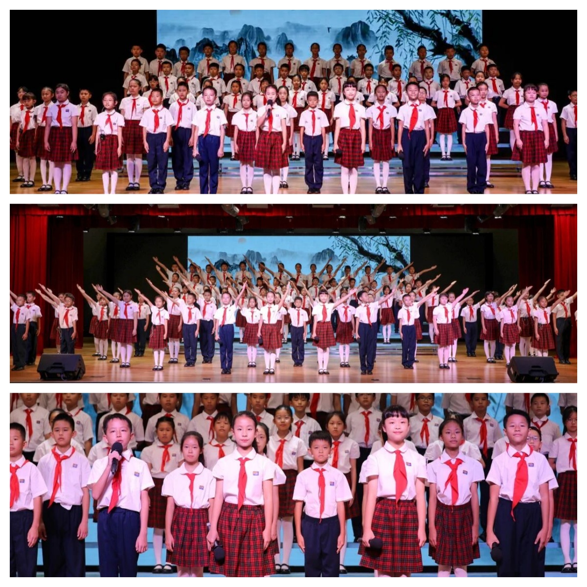 “翻开历史的画卷,穿越时光的长河……”五年级(1)班及五年级其它班级学生代表组成的朗诵团刚一开口,便将全场带入深邃的文脉长河中。《谁是最美读书人》的吟诵声里,孔子韦编三绝的执着、苏秦悬梁刺股的坚毅、鲁迅以笔为刃的担当、周恩来“为中华之崛起而读书”的壮志、钱学森埋首书卷的赤诚依次铺展。当“以书为剑,以笔为刀”的呐喊响彻礼堂,孩子们眼中闪烁的光芒,恰是对“民族脊梁”最好的注解。这份跨越千年的读书精神,在少年声中完成了最动人的传承。