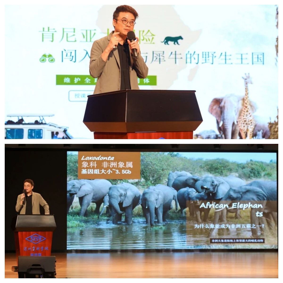 “同学们,如果给你一张机票,你最想去看非洲的什么?”“狮子!”“长颈鹿!”“角马大迁徙!”2025年10月15日下午,深圳实验学校坂田部报告厅里掌声与欢呼声此起彼伏——七年级全体师生正沉浸式参与读书月特别活动。一场名为《肯尼亚大冒险:维护全球生命共同体》的科普讲座,带大家“云穿越”赤道草原,与非洲生灵展开了一场奇妙的生命对话。